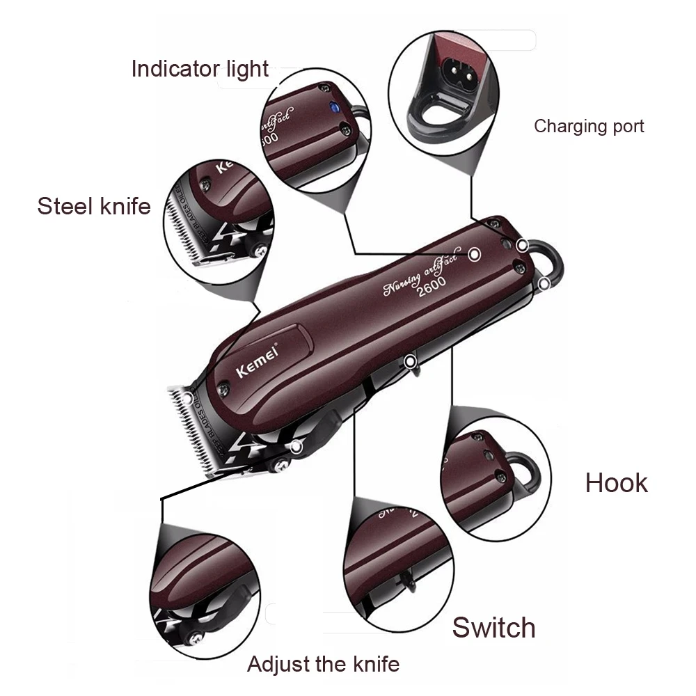 Электрическая машинка для стрижки волос Kemei KM-2600-триммер, беспроводной, аккумуляторный, профессиональный, для парикмахерской