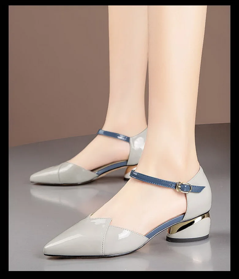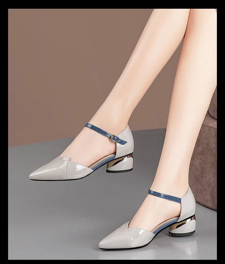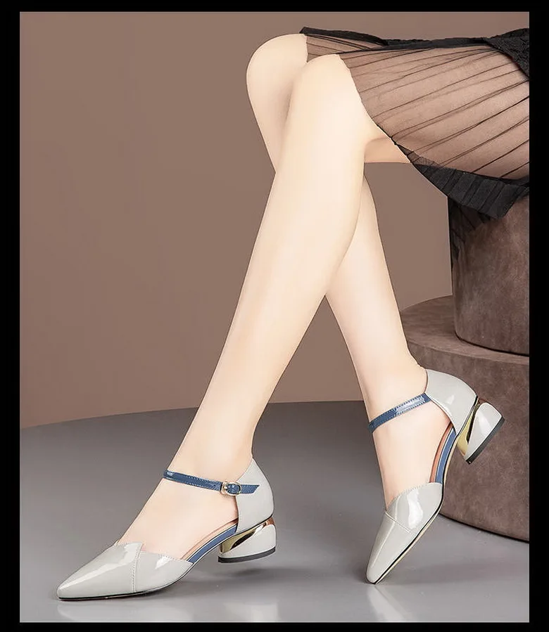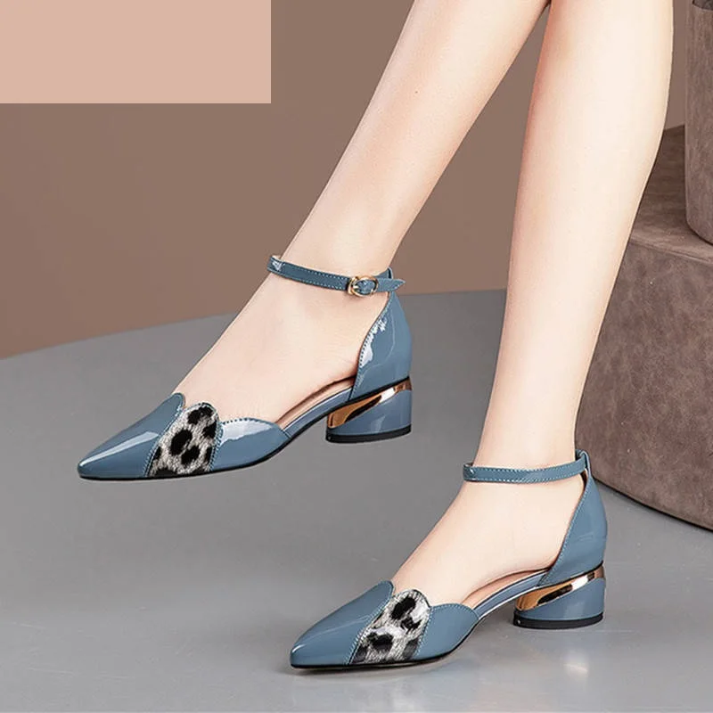 Женские босоножки из мягкой кожи и микрофибры, модные летние босоножки на среднем каблуке, Офисная Женская рабочая обувь, ремешок на щиколотке с пряжкой, синий цвет, Прямая поставка, 2021