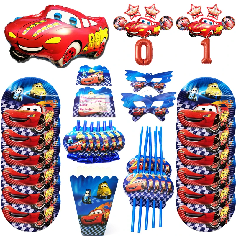 Disney тачки Молния Маккуин детские товары для дня рождения набор украшений одноразовая посуда тарелка с шариками баннер