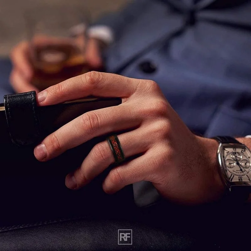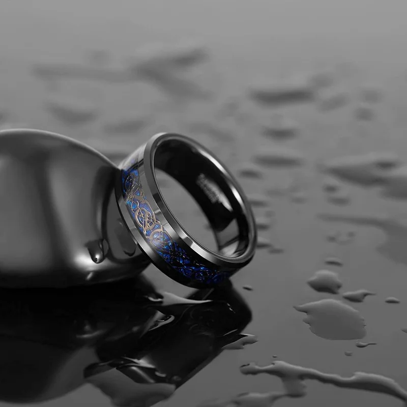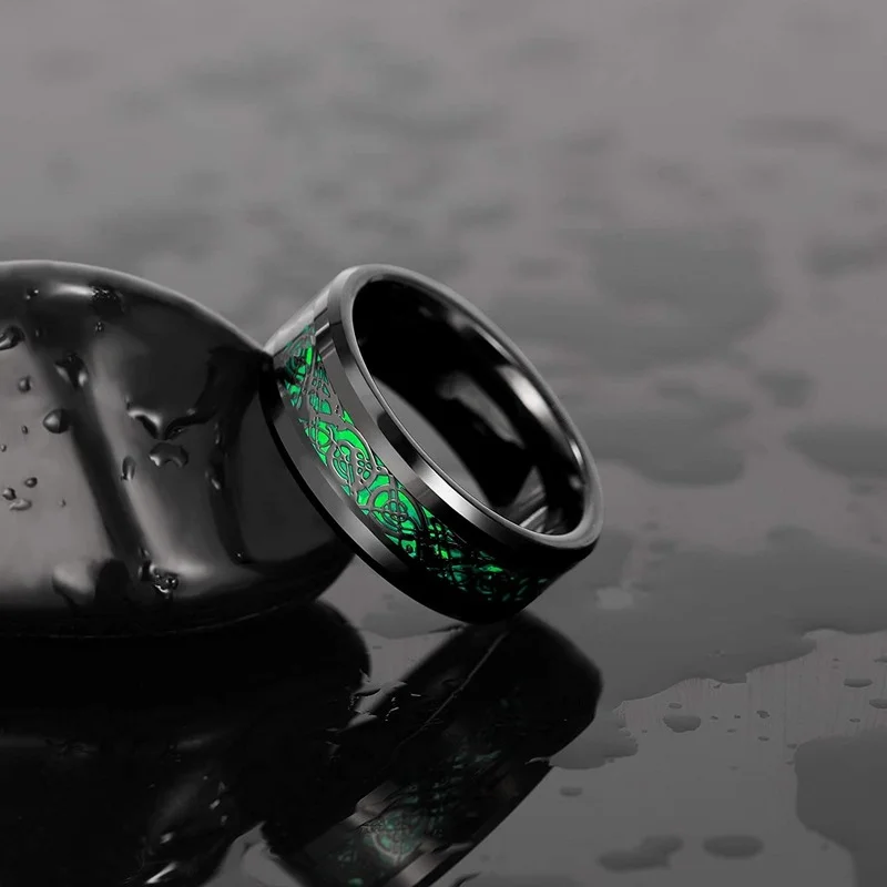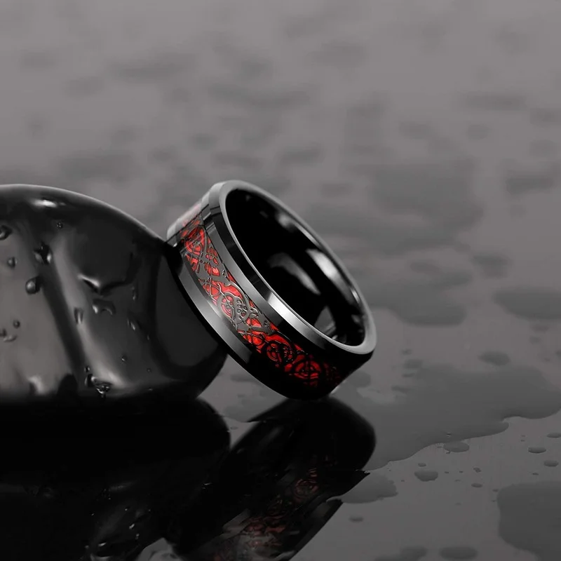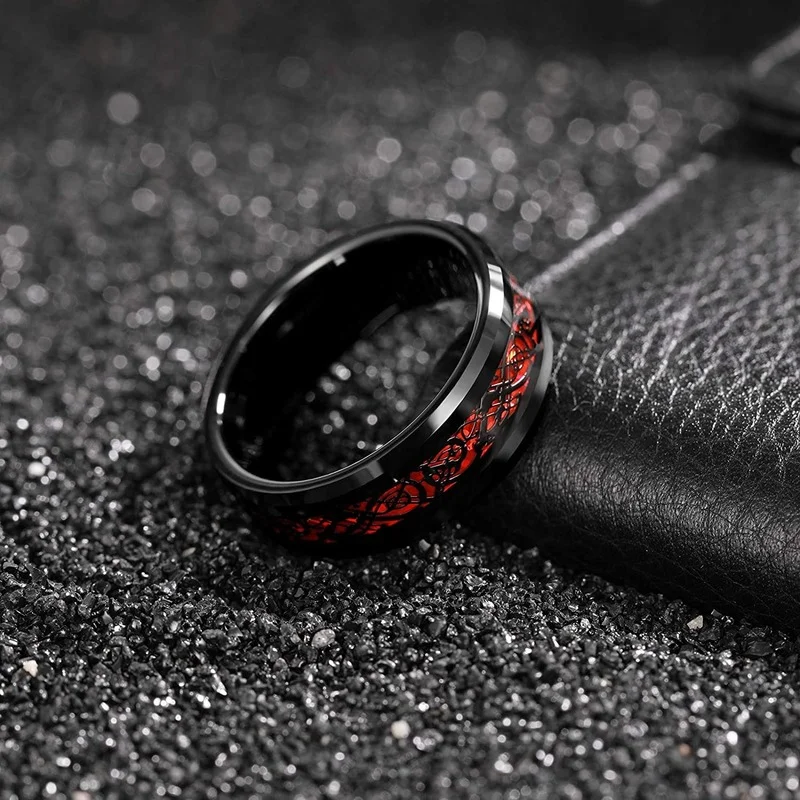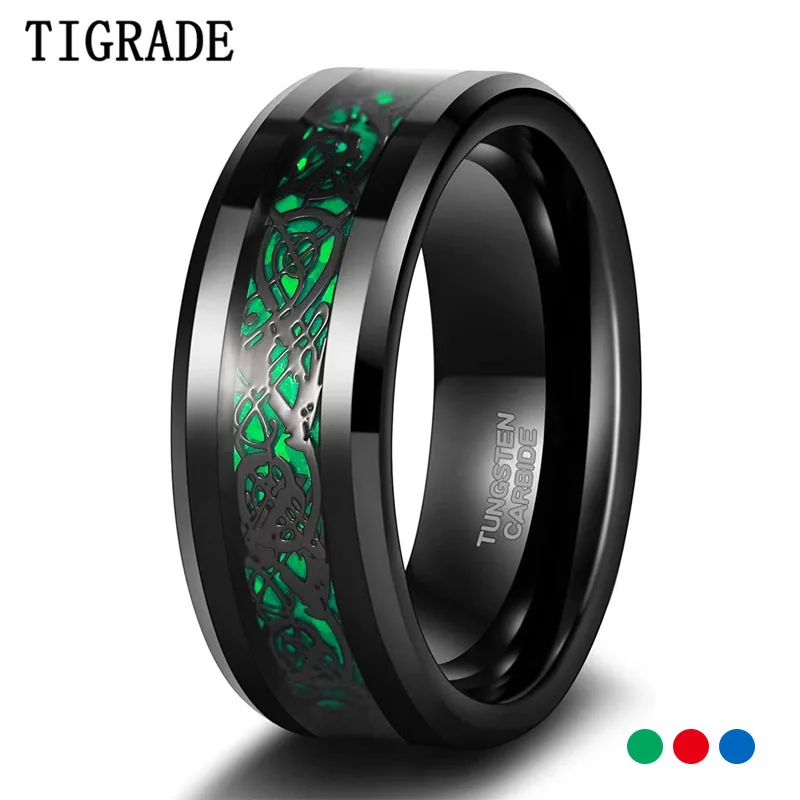 Мужское кольцо Tigrade 8 мм из вольфрама и черного цвета с инкрустацией кельтского дракона красныезеленые мужские обручальные кольца мужские удобные Размеры 7-13
