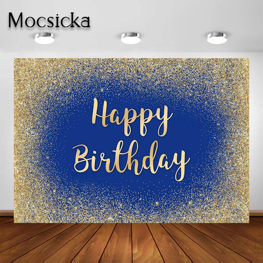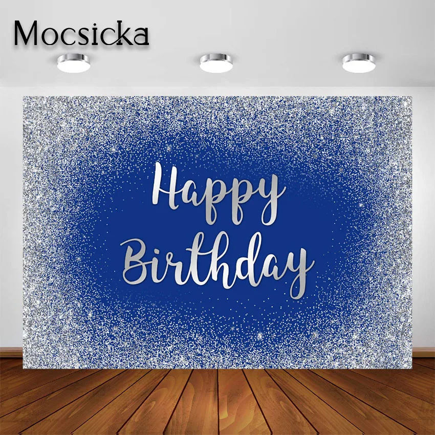 Mocsicka Королевский синий Серебристые золотистые блестящие конфетти фон для фотосъемки взрослых счастливый День рождения Декор Фон для фотосъемки