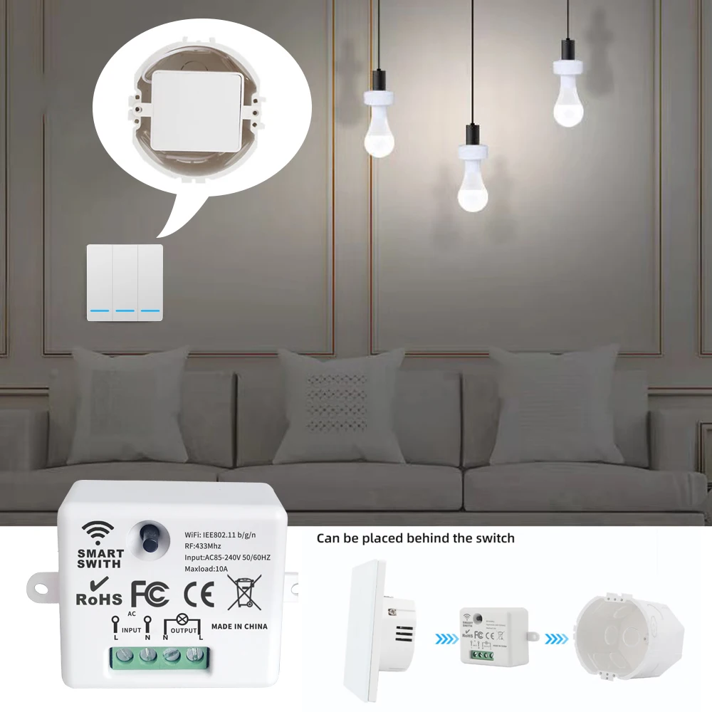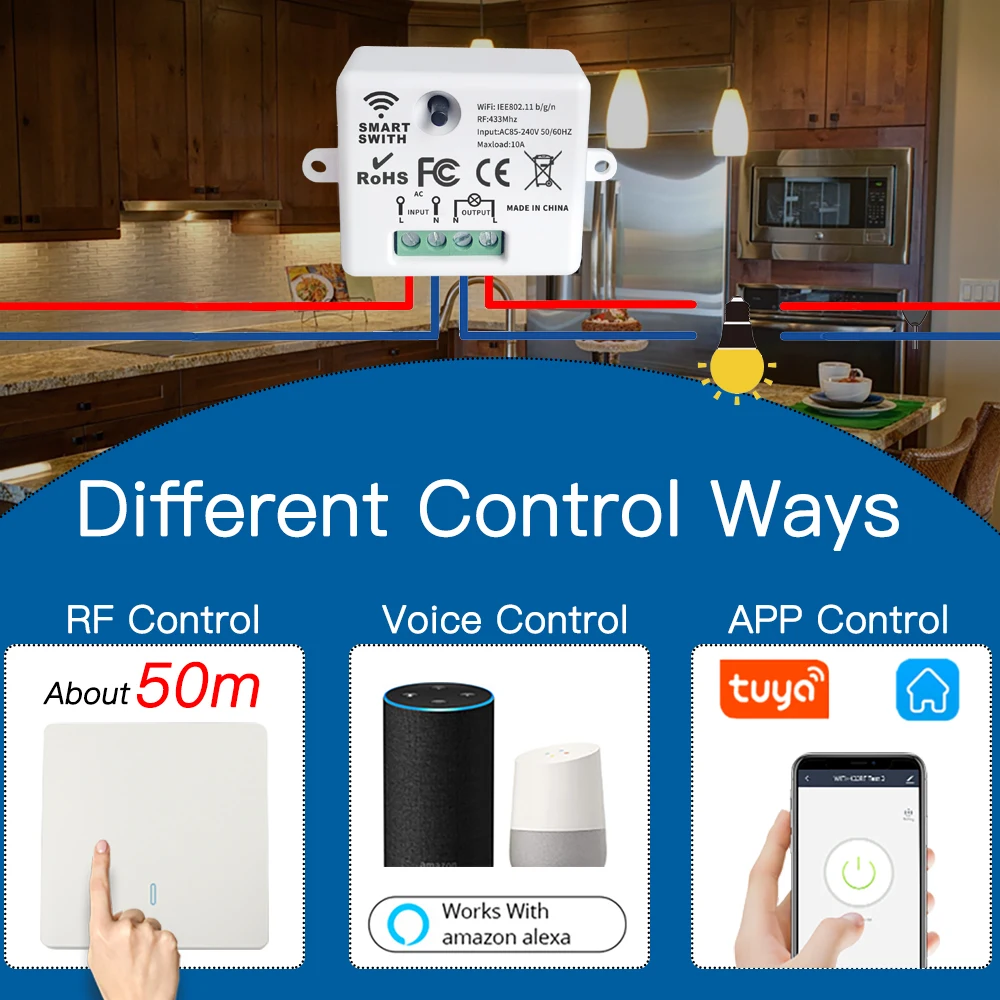 Мини-прерыватель Tuya, Wi-Fi, умный выключатсветильник, модуль 433 МГц, реле, настенная панель, беспроводное Голосовое управление, таймер, Google Home Alexa