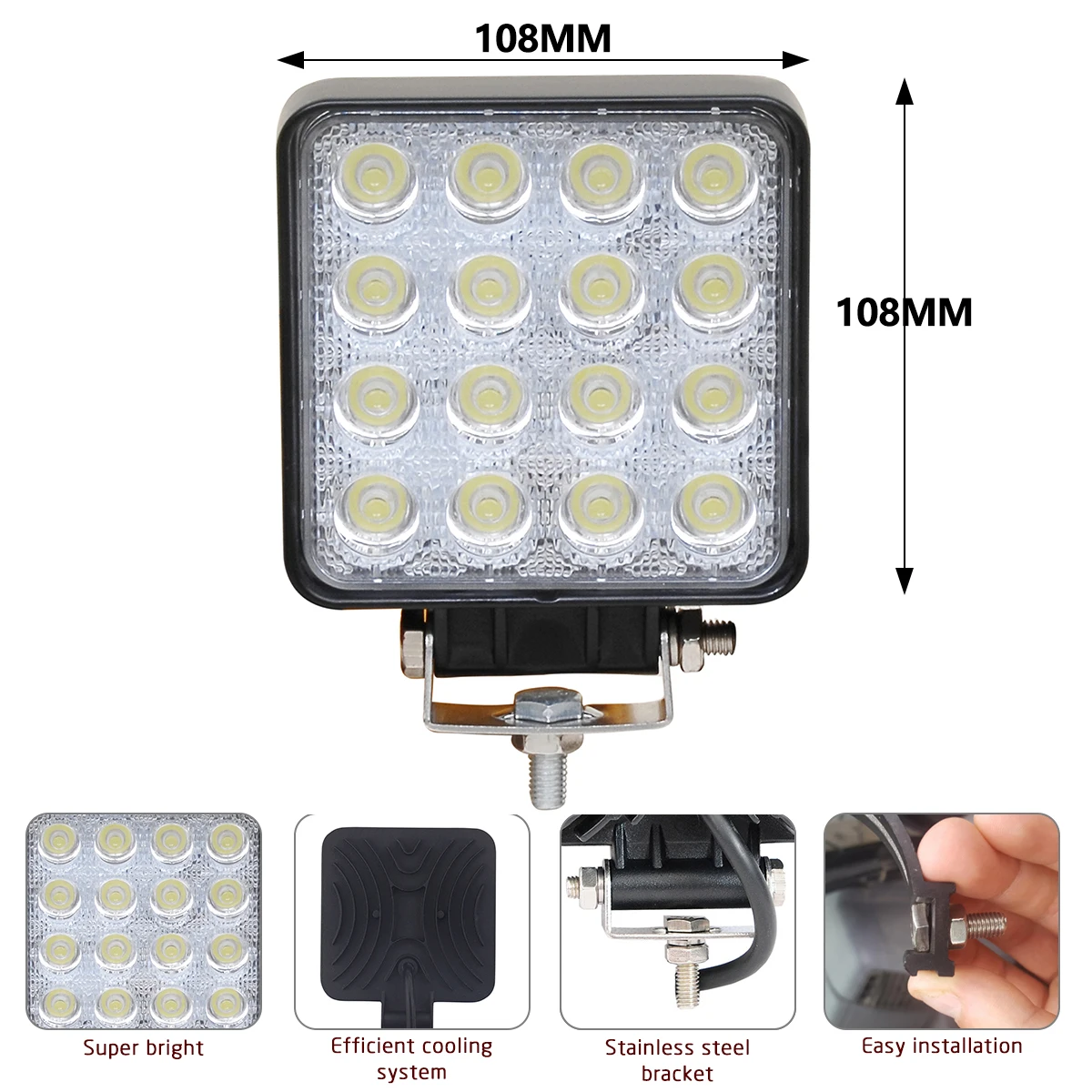 Новинка, светодиодный прожектор 48 Вт, светодиодный прожектор 16 Барр, квадратный прожектор для внедорожника, светодиодный рабочий светсветильник льник 12 В 24 В для автомобилей, грузовиков, 4x4 4WD, автомобилей, кроссоверов, квадроциклов