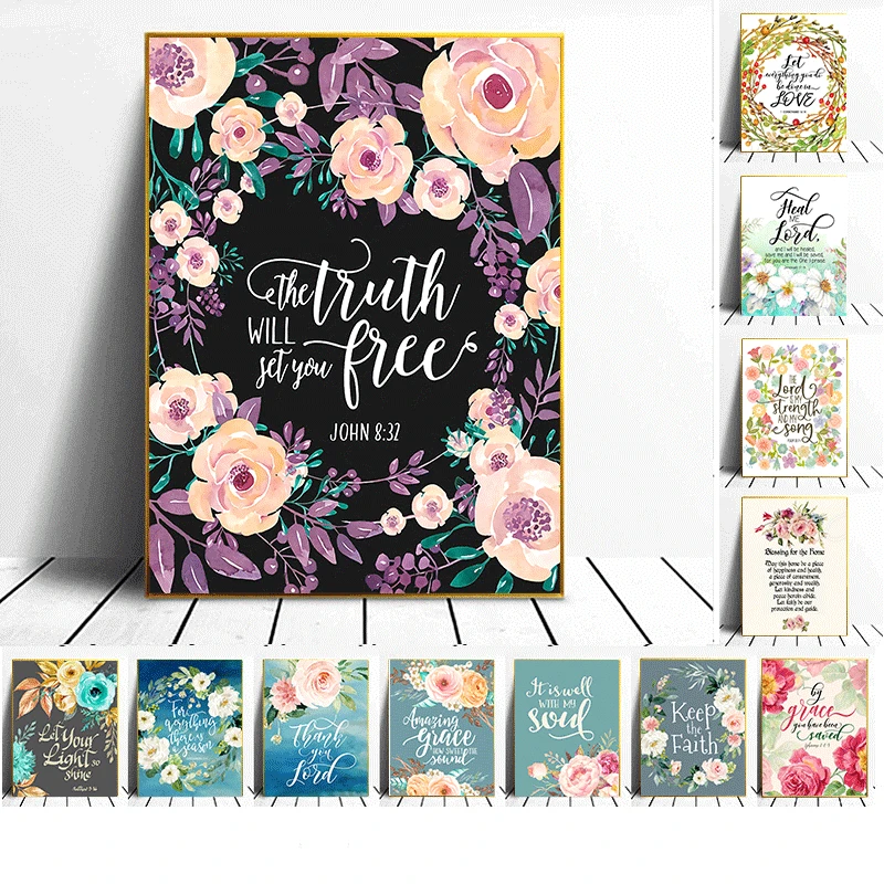 Библейские стихи, принты, христианские настенные художественные плакаты, пионы, цветы, благословенные цитаты, Картина на холсте, украшение для дома, гостиной