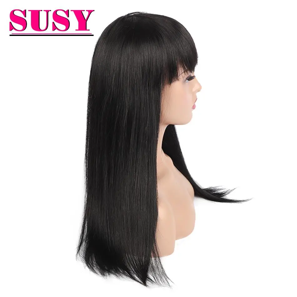 Парик из перуанских прямых человеческих волос с челкой, парик без к...