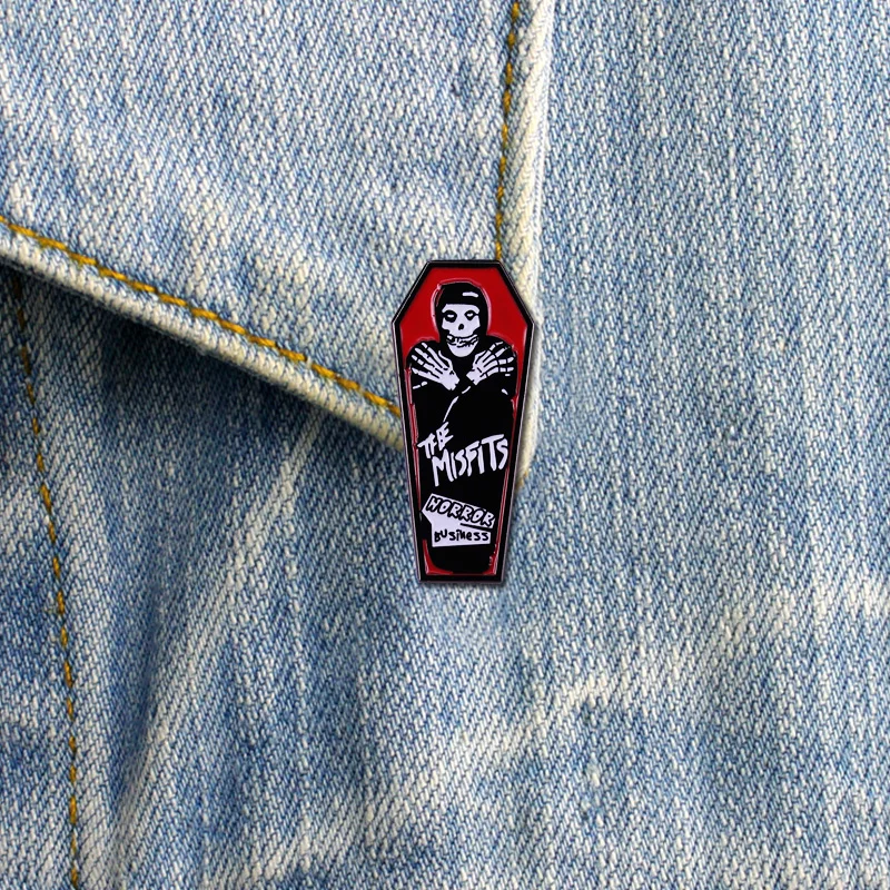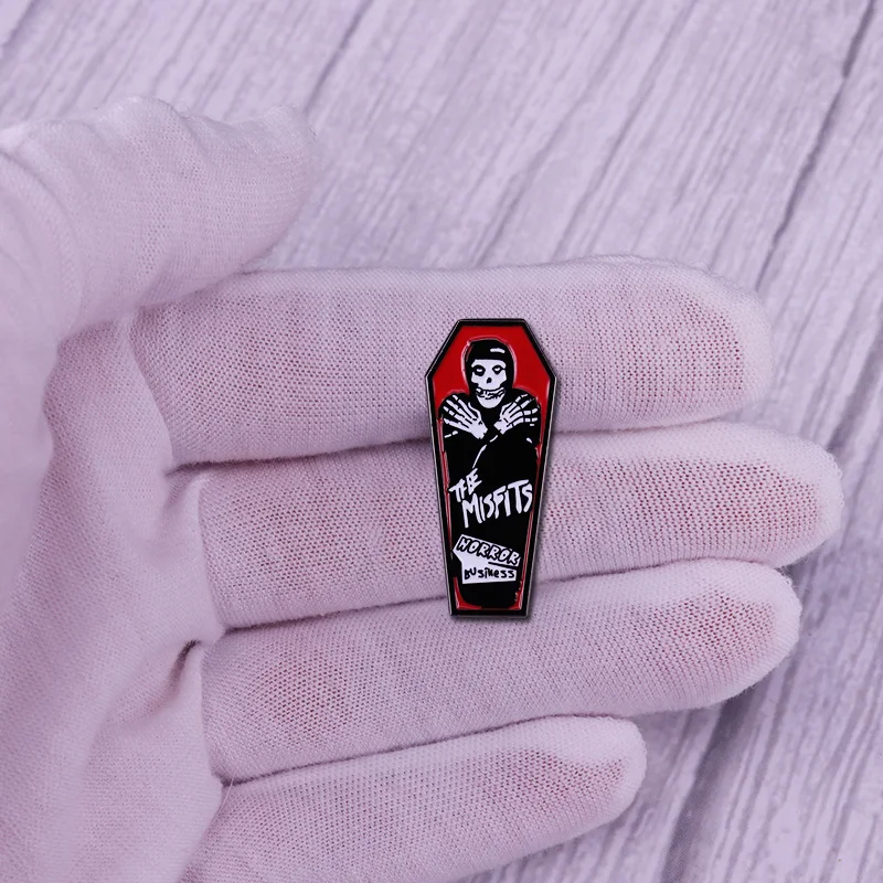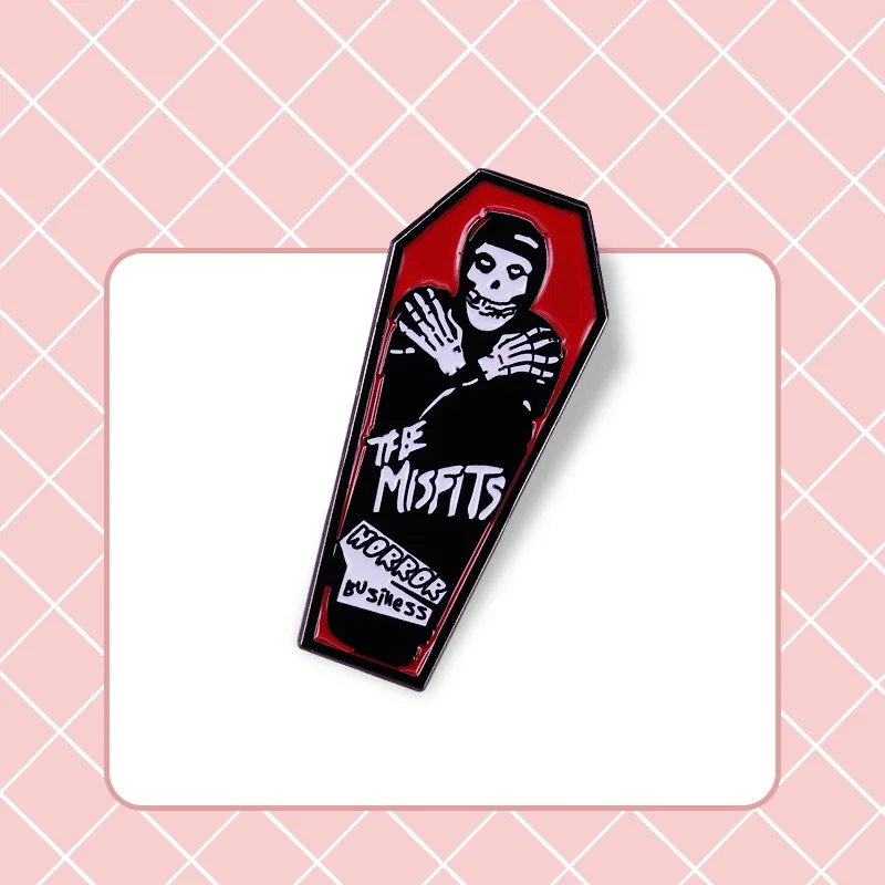 Misfits Готическая эмалированная брошь в деловом гробе рок-группы, булавки, значки, булавки для лацканов, Модные металлические ювелирные изделия из сплава, аксессуары, подарки