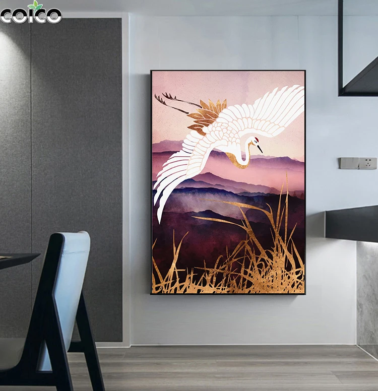 Картина на холсте с дельфином и журавлем, настенный постер с рамкой для рисования диких животных, птиц, Современная Скандинавская печать для гостиной