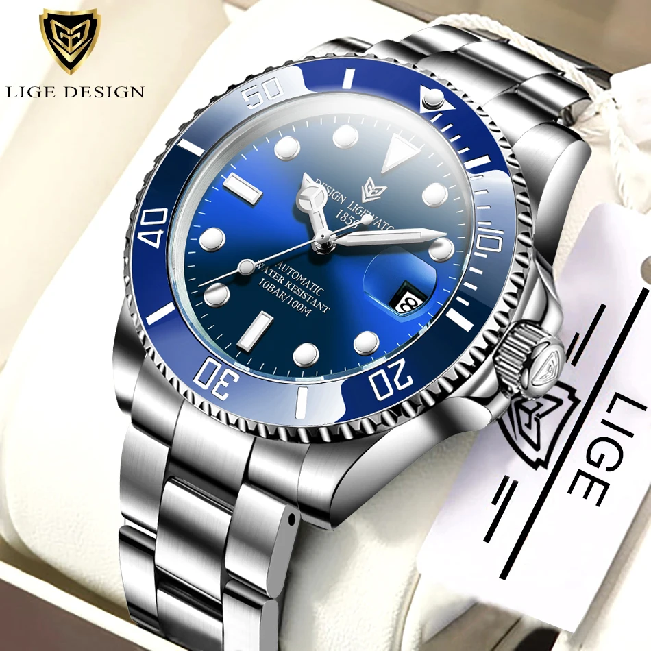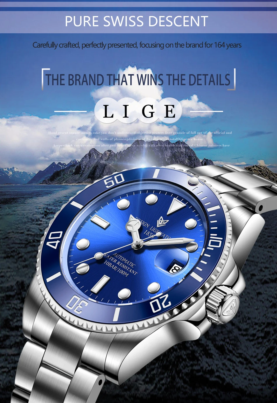 Часы наручные LIGE Мужские механические, брендовые Роскошные водонепроницаемые модные автоматические из стали 316L, 2021
