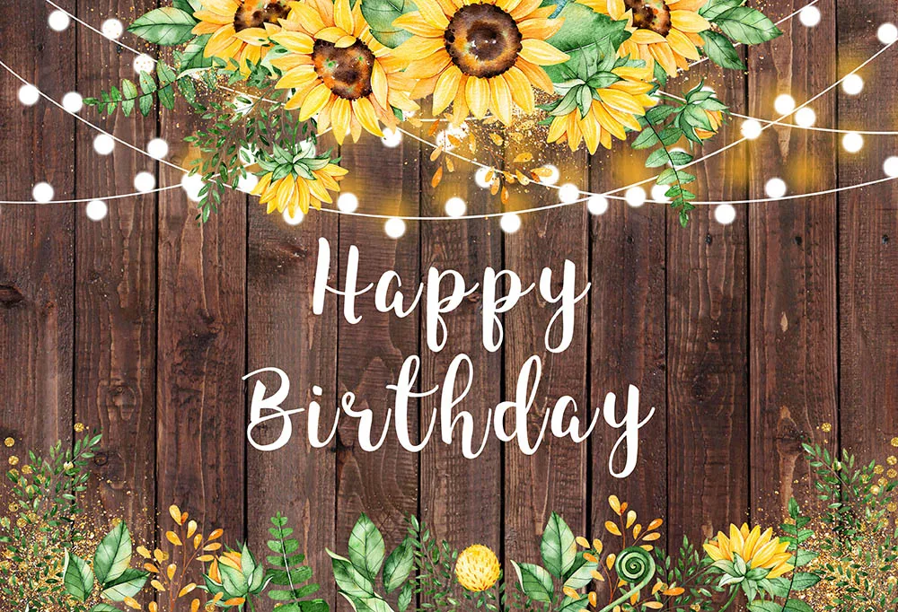 Декоративный Деревянный баннер с подсолнухами, с зелеными листьями на тему Happy фон для фотосъемки на день рождения