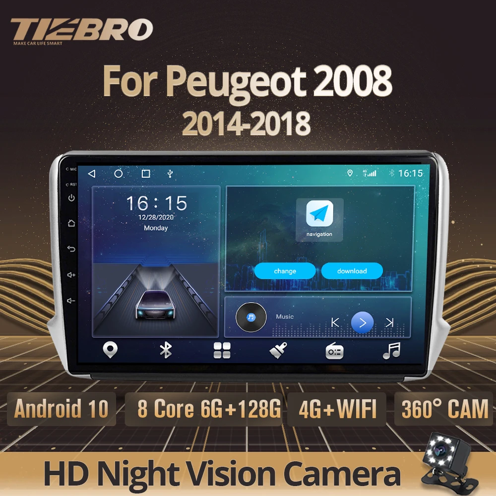 Автомагнитола TIEBRO, 2DIN, Android 9,0, для Peugeot 206, 2000-2018...