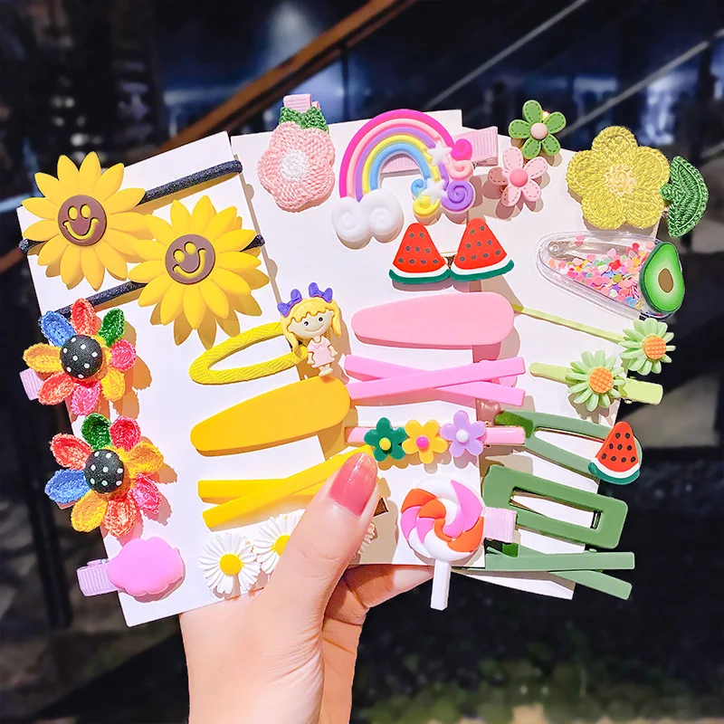 210 шт.новый комплект одежды для девочек с забавными персонажами из мультфильмов с цветочным геометрическим узором шпильки очаровательные заколки повязка Радуга заколка для волос модные аксессуары для волос