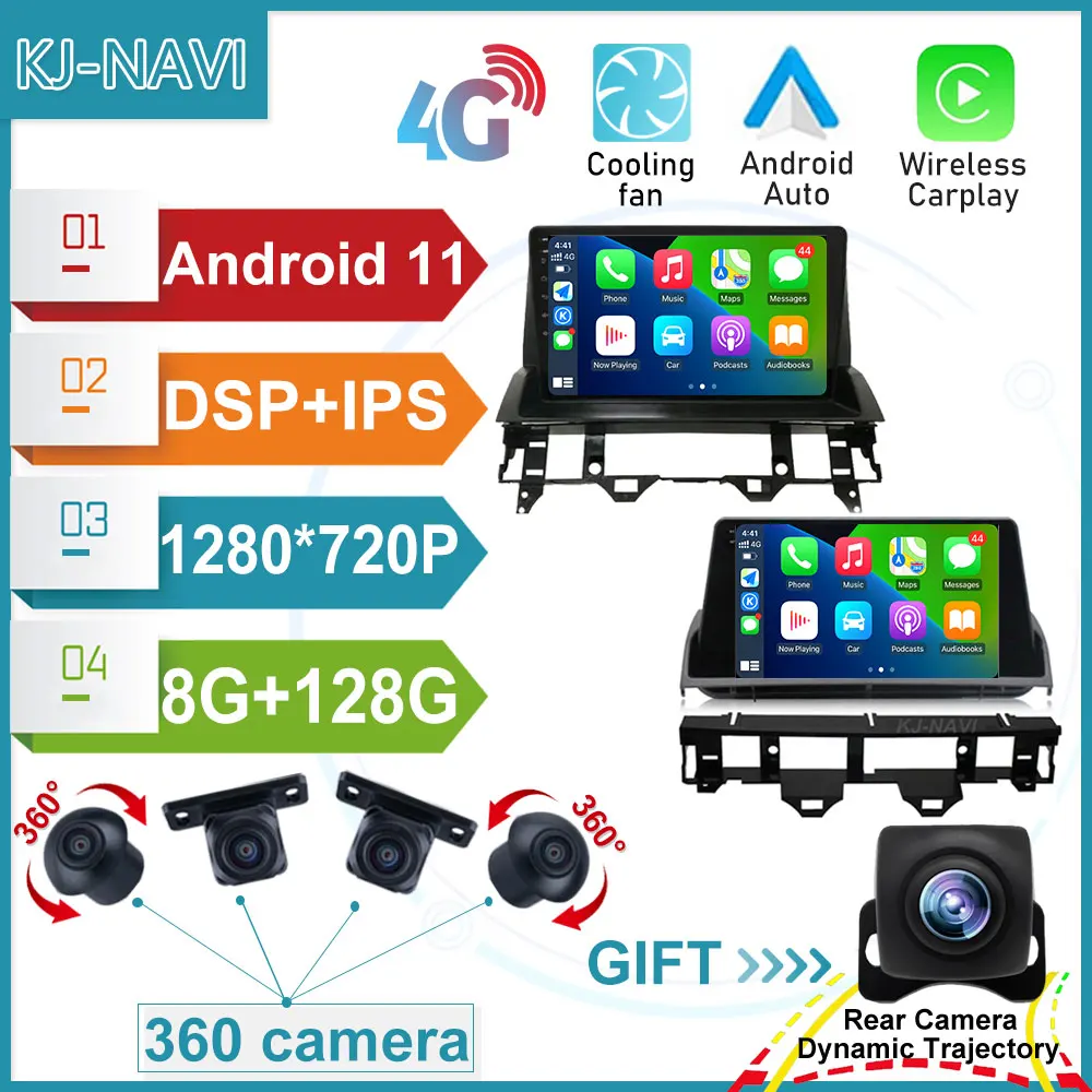 Автомобильный DVD-плеер для Mazda 6 2002-2008, беспроводной CarPlay, Android 11, DSP, автомобильный мультимедийный плеер, мультимедийная навигация, GPS