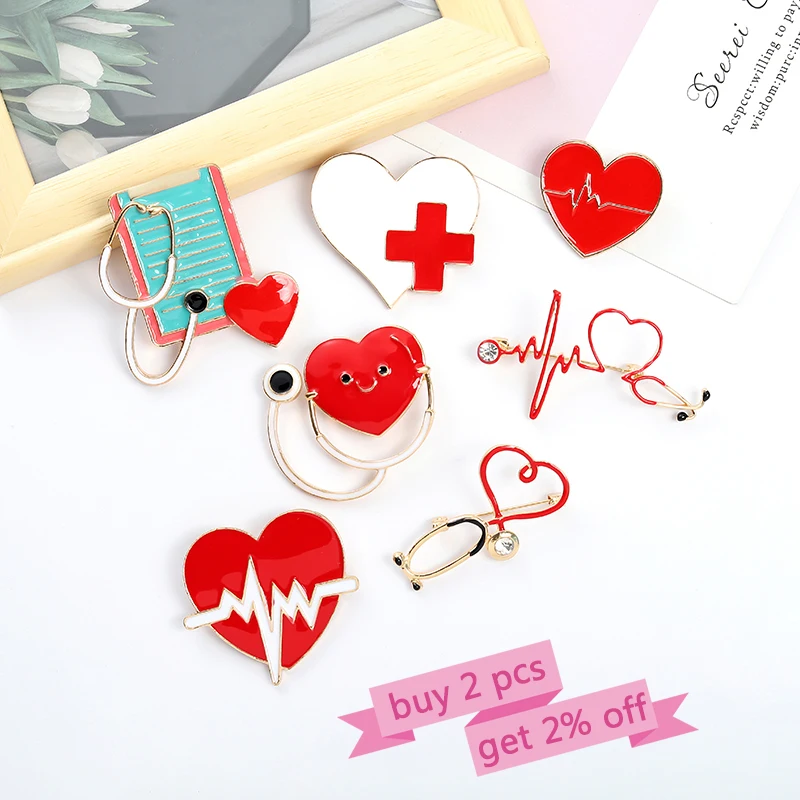 Эмалированные заколки для стетоскопа сердцебиения, медицинская брошь с электрокардиограммой на заказ, значок на лацкан, сумка, мультяшное ювелирное изделие, подарок для детей, друзей