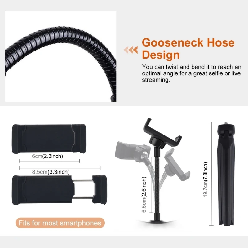 Характеристики кольцевого светодиодный 1. Количество бусин: 80 шт. 2. Модель лампы: 2835 3. Яркость лампы: 24-26лм 4. Цветовая температура: 3200-5600K 5. Мощность: 0,1 Вт-10 Вт 6. Напряжение: 5 В 7. CRI: >95 8. Диапазон затемнения: 1%-100% 9. Материал корпуса: ABS, акриловый светильник 10. Размеры: Наружный диаметр 260 мм. Внутренний диаметр 210 мм 11. Источник питания: порт USB 12. Длина кабеля: 2 м Крепление для штатива 1. Портативность и стабильность этого компактного штатива превосходны. 2. Его можно хранить в кармане. Идеально подходит для путешествий или съемок на открытом воздухе. 3. Изготовлен полностью из пластика с мягкими резиновыми ножками, которые не будут скользить по гладким поверхностям. 4. 1/4 дюйма-это стандартная нить. Подходит для камеры, карданного стабилизатора, монопода, видео светильник и т. Д. 5. Подключение к стабилизатору карданного шарнира или видео-светильник, идеально подходит для съемки во времени или съемки под низким углом.