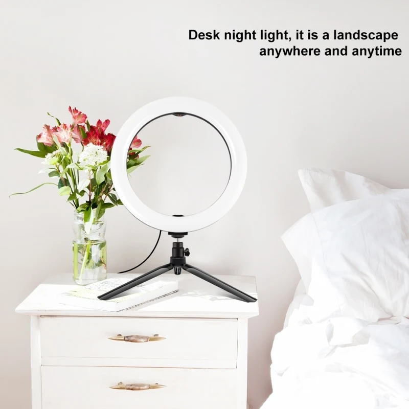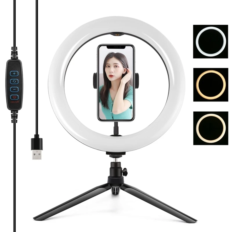 Светодиодный кольцевой светильник, 10,2 дюйма, USB, с настольной подставкой, штатив, кольцевой светильник для макияжа, прямой трансляции видео, реквизит для фотосъемки