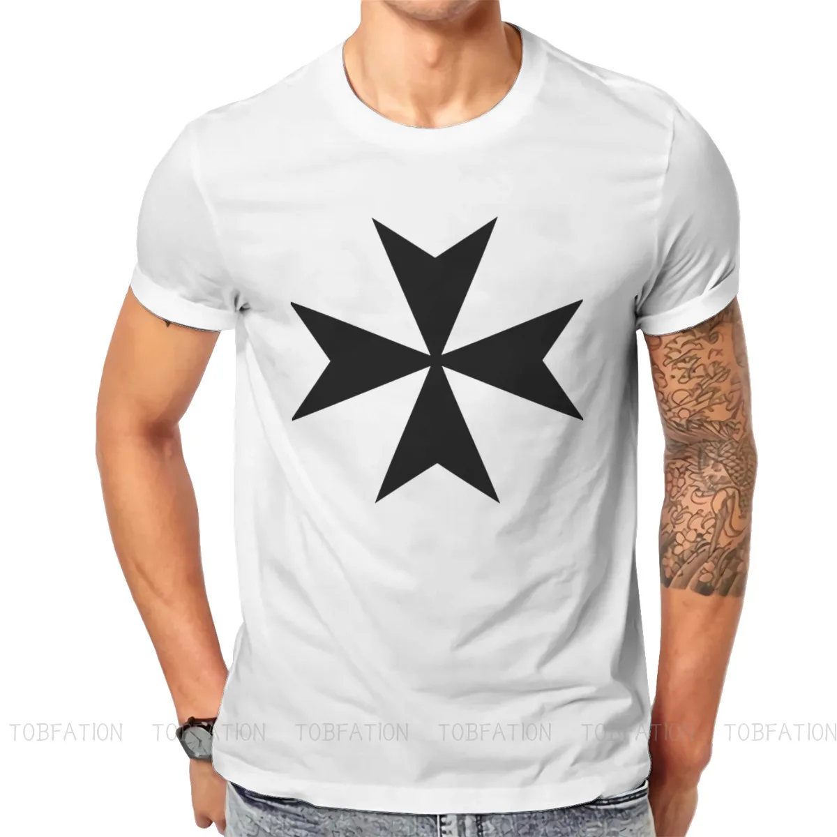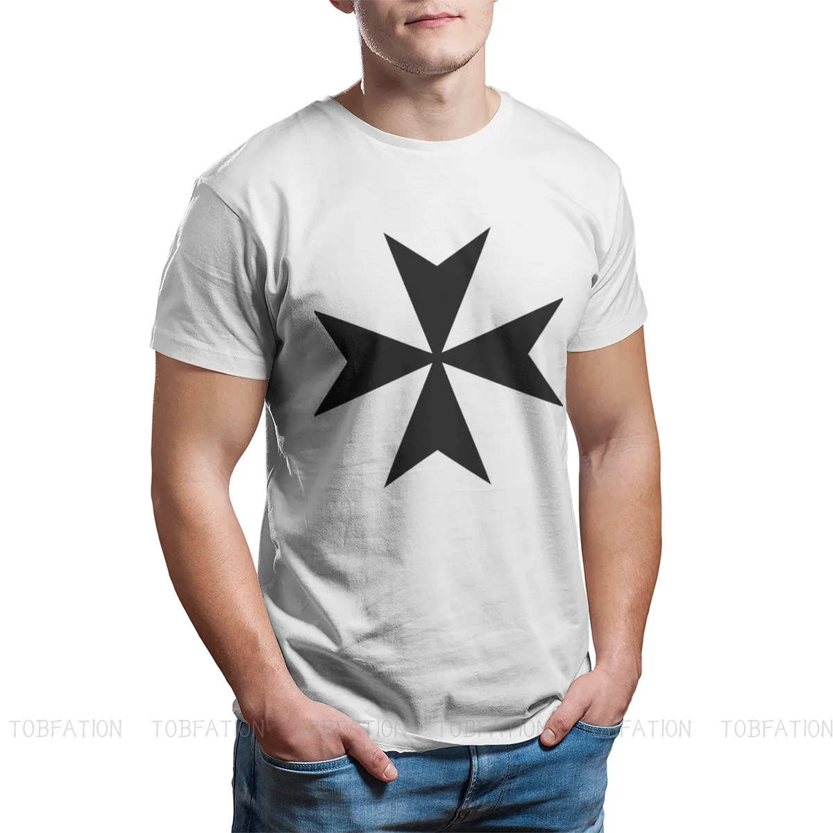 Модные мужские футболки с изображением Мальтийского Креста, футболки с изображением крестоносных королей, крупногабаритных стретч-игр, стильные тканевые топы, футболка большого размера с круглым вырезом