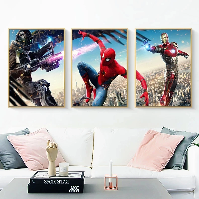 Постер на холсте с супергероями Marvel, Человек-паук, Железный человек, Куадрос, настенные картины и принты для мальчиков, спальня, домашний декор
