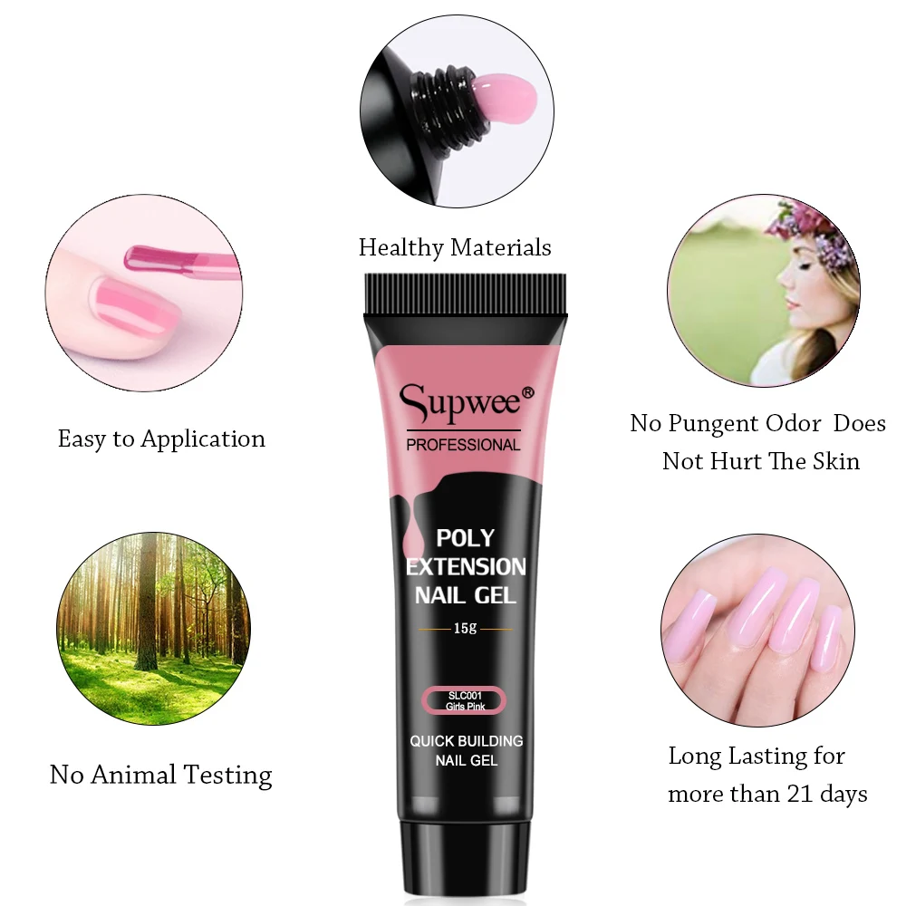 Набор полигеля для ногтей SUPWEE, 15 г, серия чистых цветов, гель для наращивания ногтей, Полупостоянный гель для ногтей для маникюра, полигель для наращивания ногтей