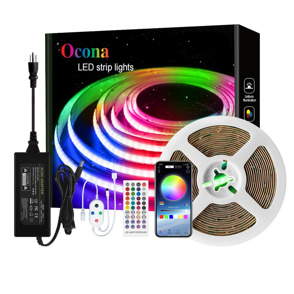 Набор светодиодных лент COB RGB, осветительный комплект для домашнего декора, с управлением через приложение на телефоне, музыка, 840LED DC 24В, гибкая лента с диодами сделай сам, совместимая с Bluetooth