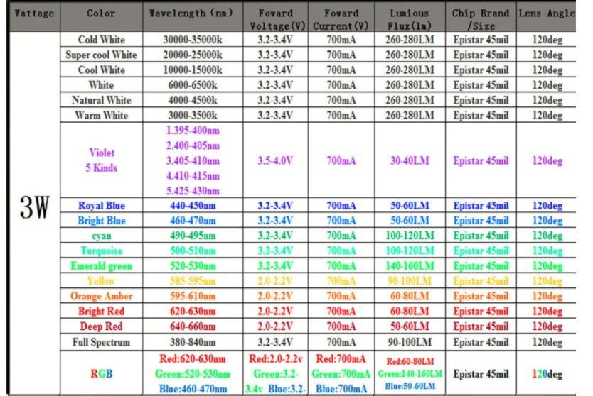 100% Новый светодиодный шарик высокой мощности 3 Вт Срок службы 50000 часов Двухлетняя гарантия Номер продукта: Светодиоды высокой мощности 1 Вт 3 Вт Ток: 1 Вт: 300 мА 3 Вт: 700 мА (3 Вт RGB-350 мА) Средний срок службы: более 100000 часов Особенность: 1. Высокая яркость, низкое освещение, энергосбережение. 2. Сертификация: CE, RoHS, достойна вашей покупки и доверия. 3. С чипом отличного качества, более длительный срок службы