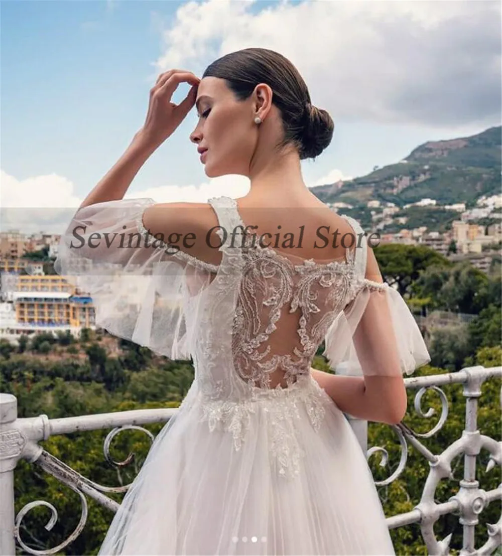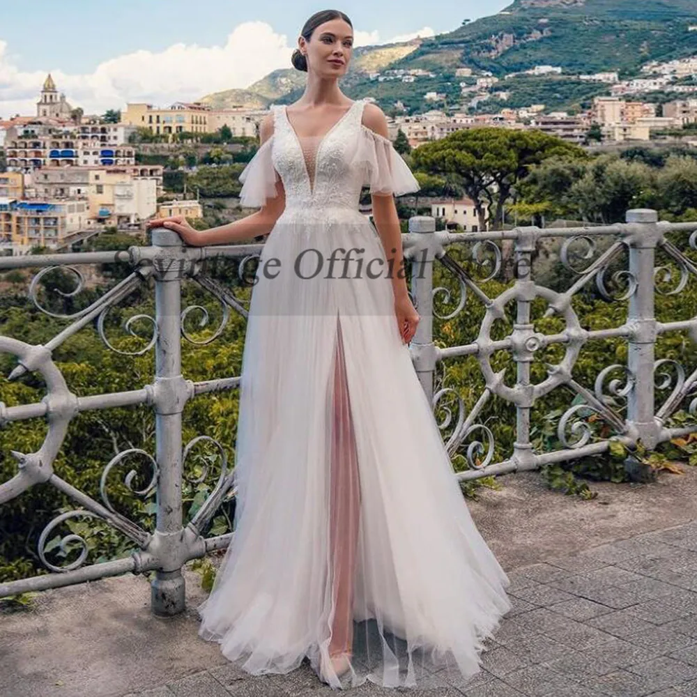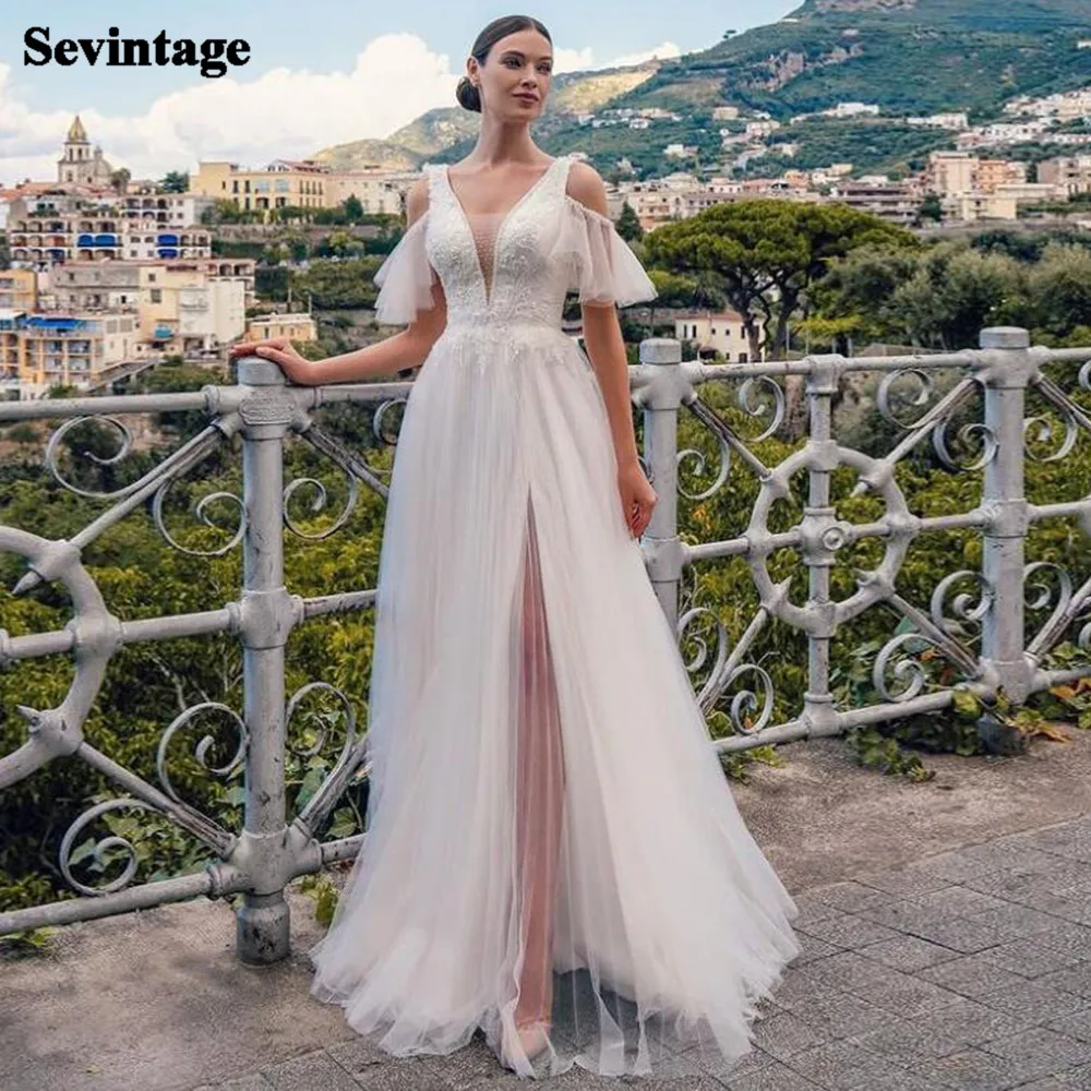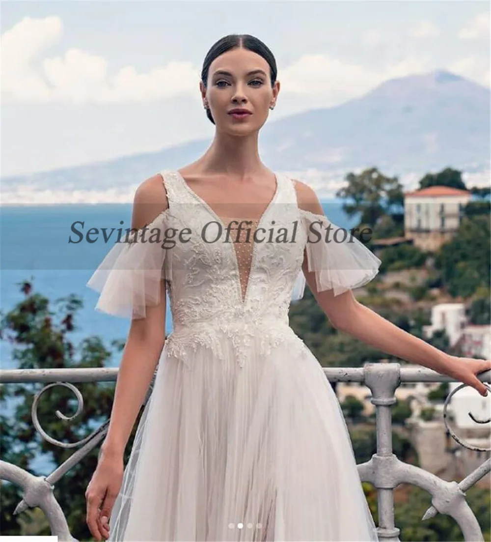 Sevintage с открытыми плечами пляжное свадебное платье Сексуальное нижнее белье с глубоким v-образным вырезом кружева Свадебная вечеринка платья Прозрачная Baack Свадебные платья для принцесс на заказ