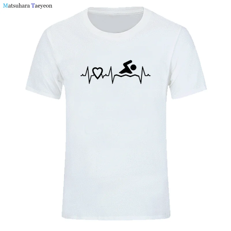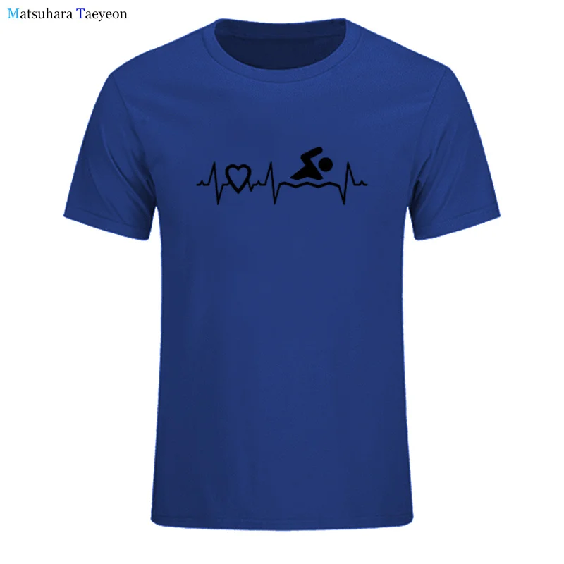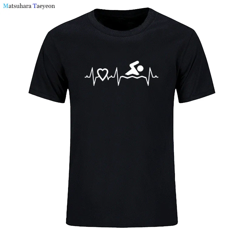 Забавный рисунок "кардиограмма сердца", с надписью I Love Плавание ming Плавание mer новые хлопковые футболки с коротким рукавом Для мужчин с О-образным вырезом Harajuku футболка
