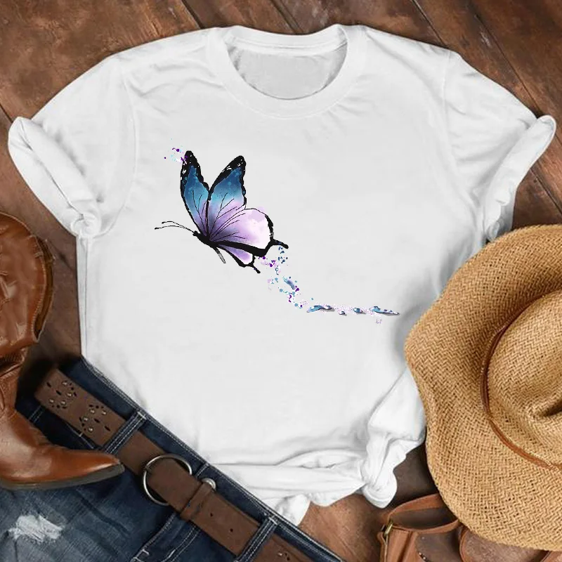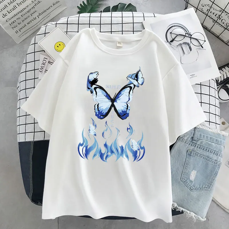 Топы синяя бабочка футболка женская 2021 Harajuku Хип-Хоп футболка с коротким рукавом повседневные топы уличная одежда женская футболка большого размера