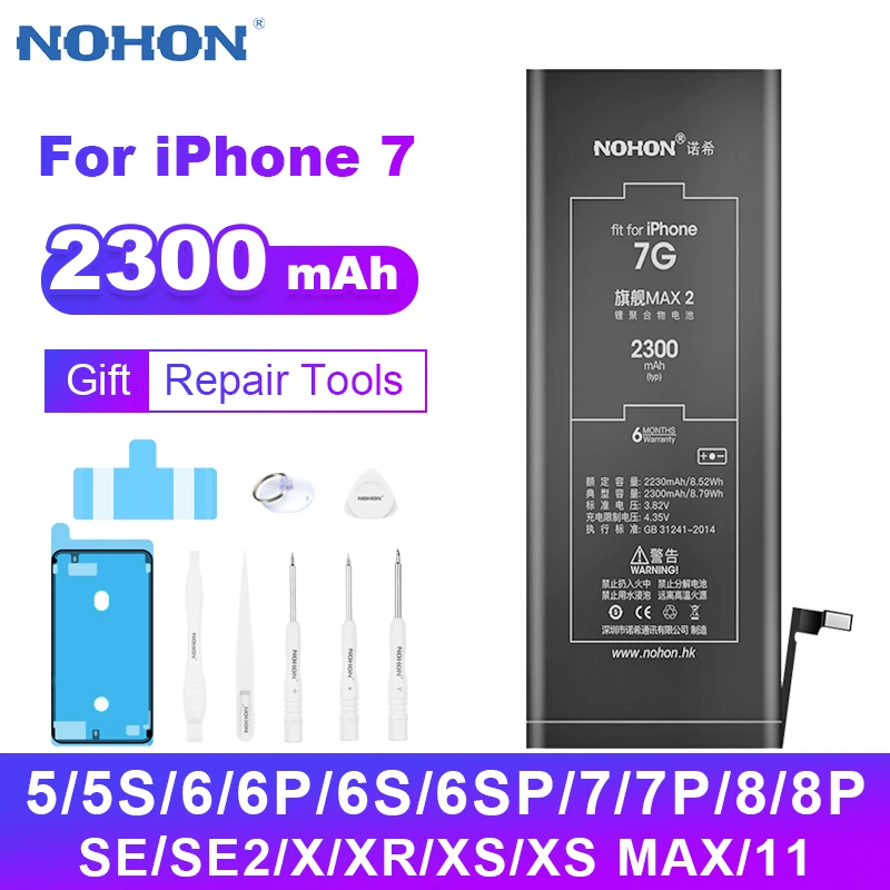 Аккумулятор NOHON для iPhone 7 8 Plus 11 SE 2020 X XR XS Max, 2300 мАч