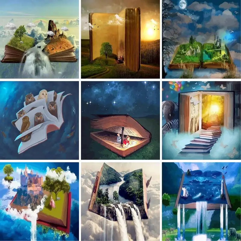 GATYZTORY Раскрашивание по номерам ручная роспись ed водопад в книге пейзаж Раскрашивание по номерам домашний декор уникальный подарок