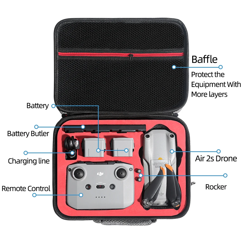 Наименование: Улучшенная серая коробка для хранения Air 2sОбъем: 29*19,5*12,5 смВес нетто: 673 гСумка для хранения разделена на: серая красная подводка для глаз и серая черная подкладка.(Подходит для DJI Mavic Air 2/Air 2S)
