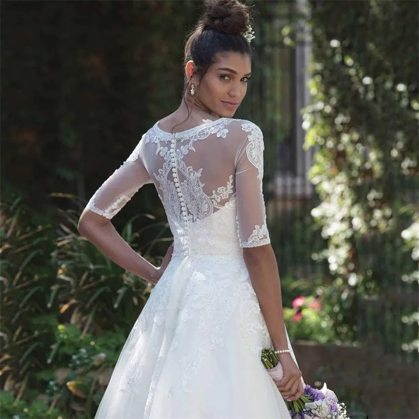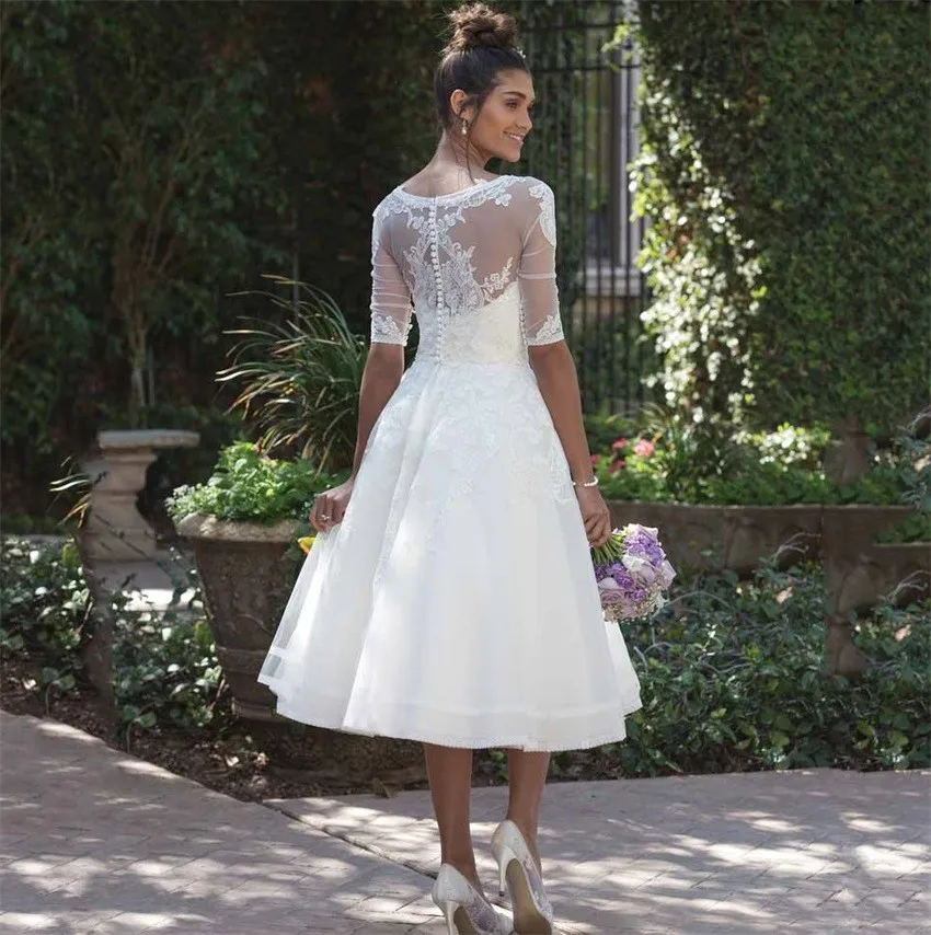 Кружевное Свадебное Платье До Колена, с полурукавами, с открытой спиной