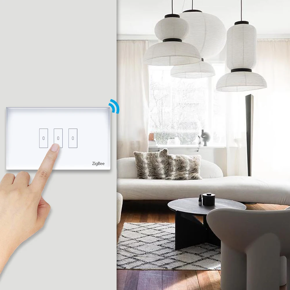 Настенный сенсорный выключатель Tuya Smart Home ZigBee, выключатель со стеклянной панелью, дистанционное управление через приложение, 1, 2, 3 клавиши, поддержка Alexa Google Home MQTT