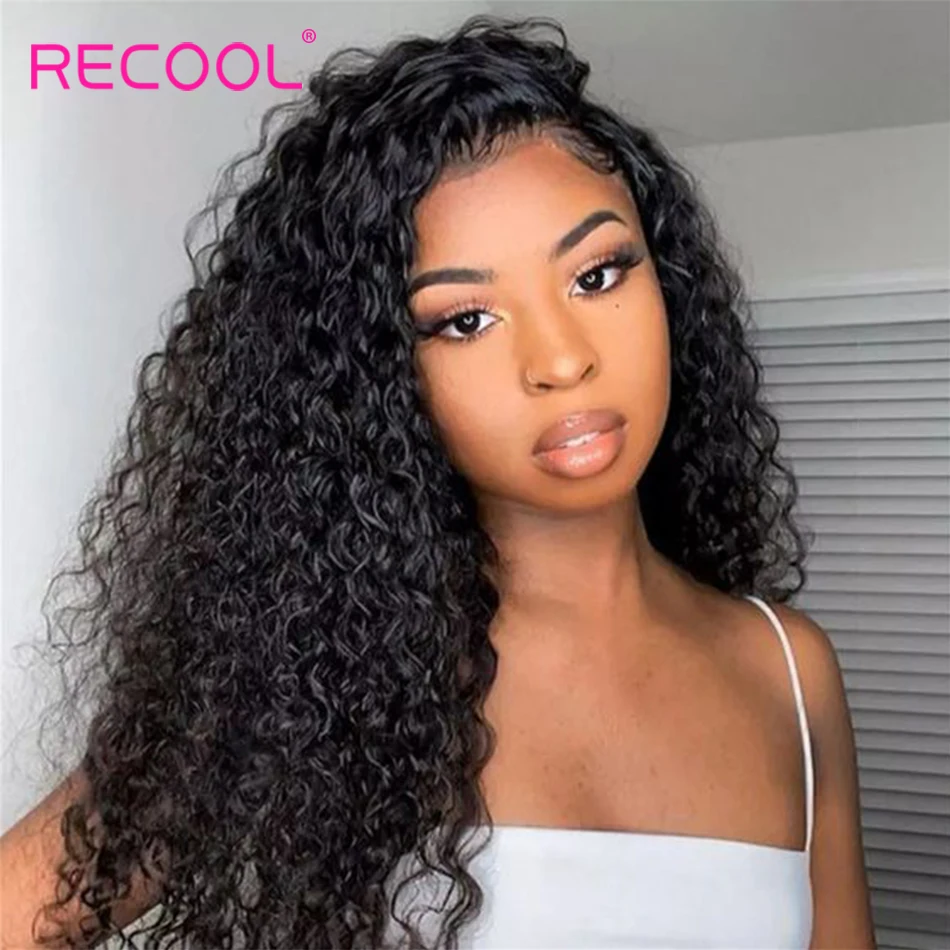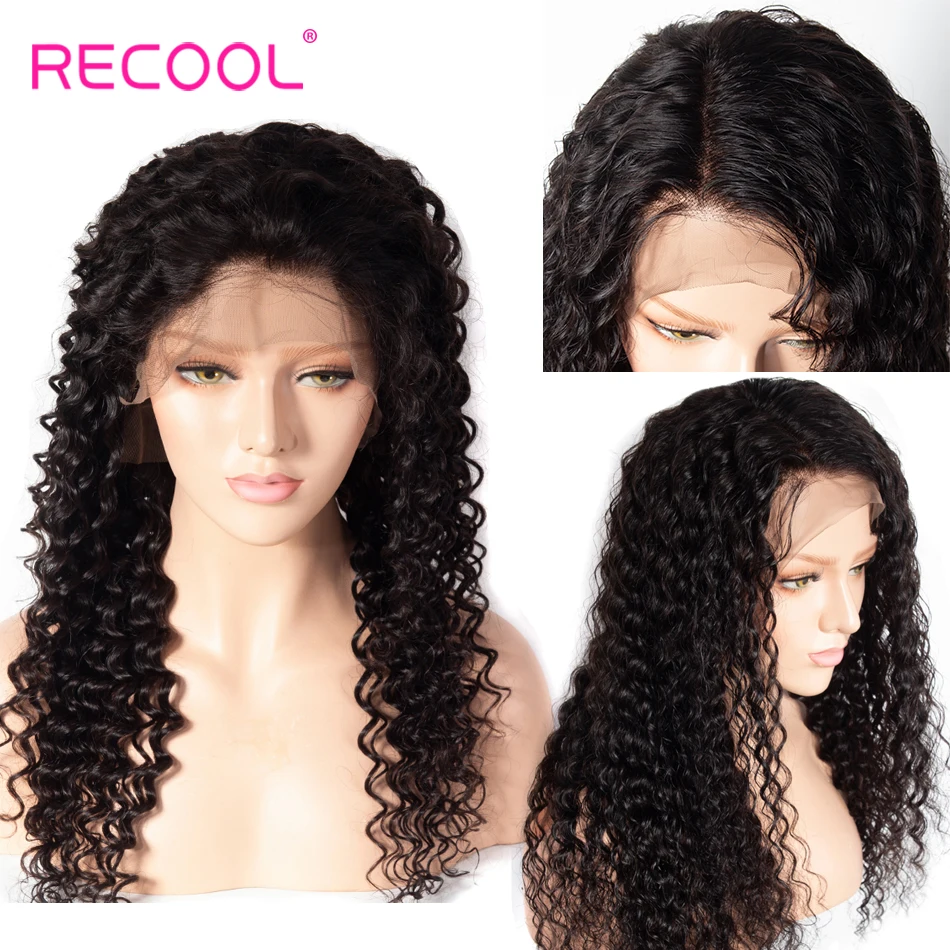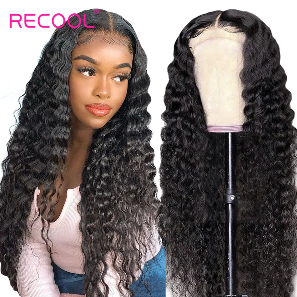 Recool парик с глубоким волнистым закрытием, парики из человеческих волос, кружевные парики 200%, предварительно выщипанные отбеленные узлы, парики, глубокие кудрявые волосы Remy, 4x4, кружевной парик