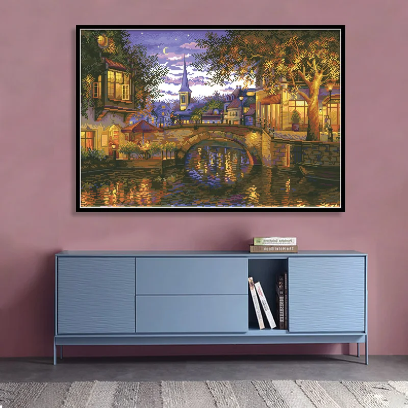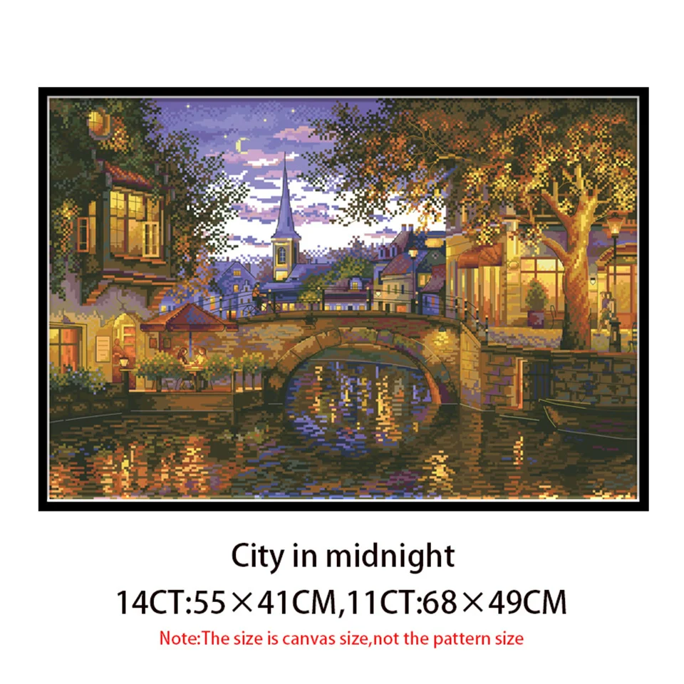 Город в полночь штампованные вышивки крестиком узоры Наборы для вышивания без напечатанной ткани 11CT 14CT DIY наборы для рукоделия домашний декор картины