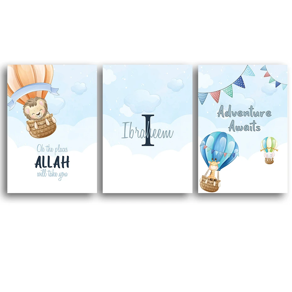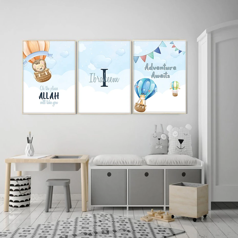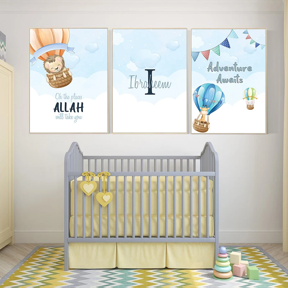 Настенные плакаты с именем на заказ для детской комнаты, рисунок на холсте с изображением горячих воздушных шаров, для украшения дома, детской комнаты