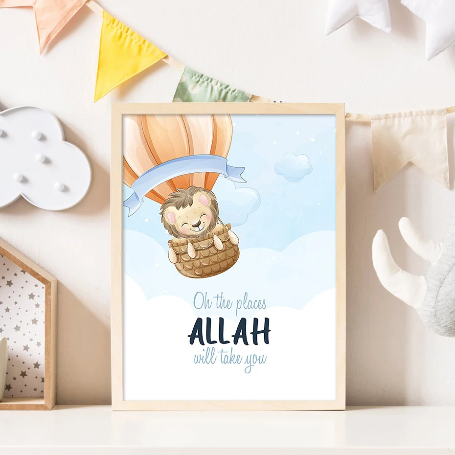 Синяя детская живопись исламских каванов Сура Бисмиллах настенные х...
