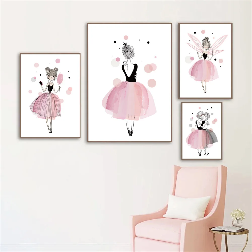 Картина в скандинавском стиле с изображением розовых крыльев принцессы, девочек, цветов, балерин, Постер и принт для детской, Настенная картина, декор для детской комнаты