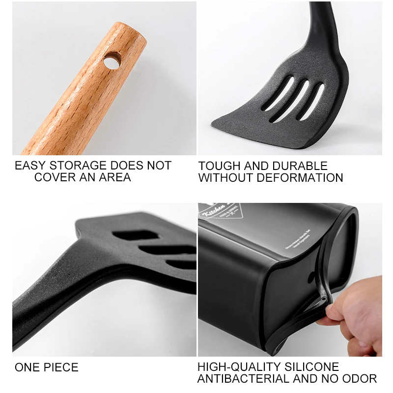 Новые силиконовые Пособия по кулинарии набор посуды с антипригарным покрытием шпатель лопата с деревянной ручкой из термостойкого хранение кухонной утвари коробка кухонный инструмент