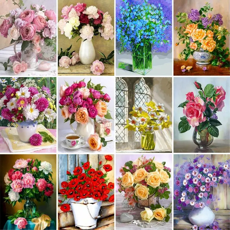 GATYZTORY картина по номерам цветок в вазе Наборы расписанную сделай сам в рамке картины маслом на холсте украшение дома ремесла уникальные художественные подарки