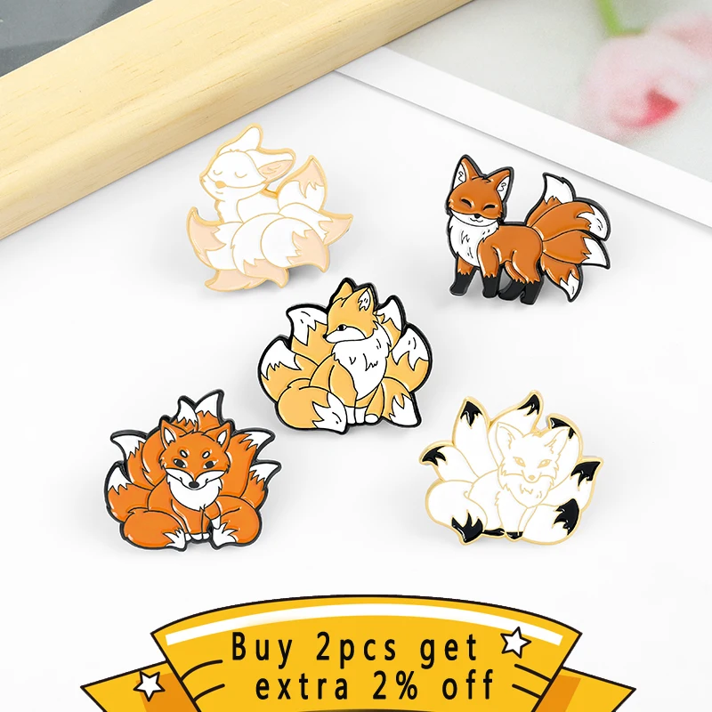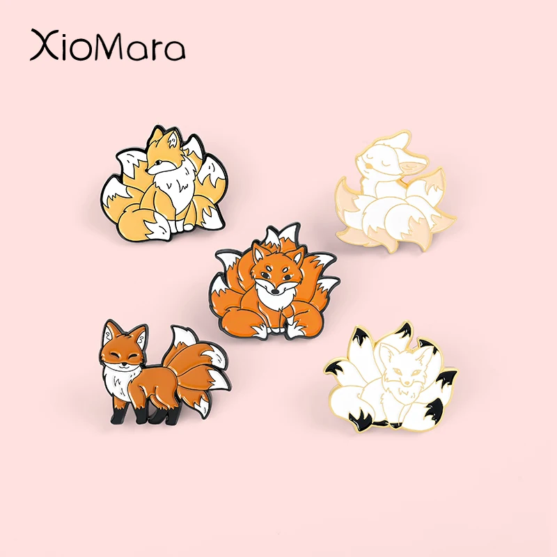 Девять Лис эмаль на булавке на мифическими броши в виде животных значки, одежд булавки "сумка" из мультфильма, ювелирное изделие в подарок для друзей