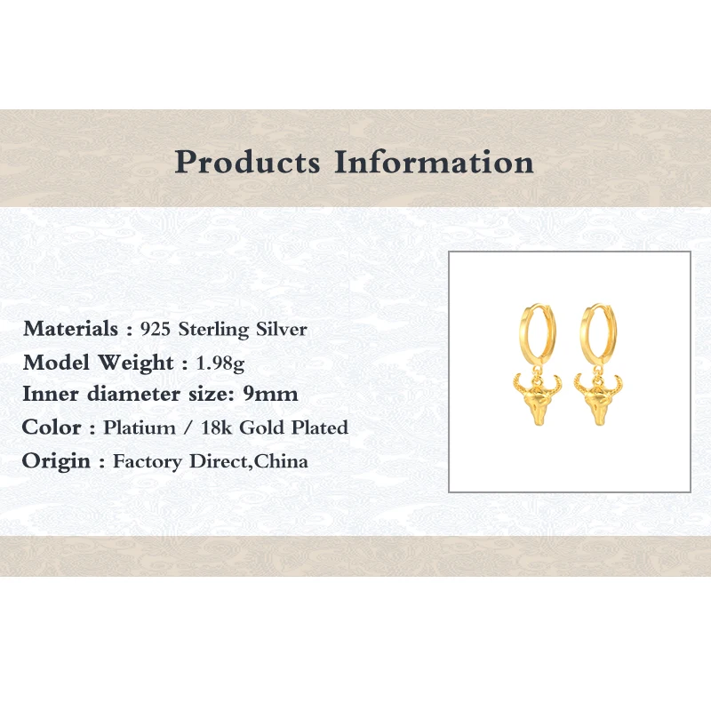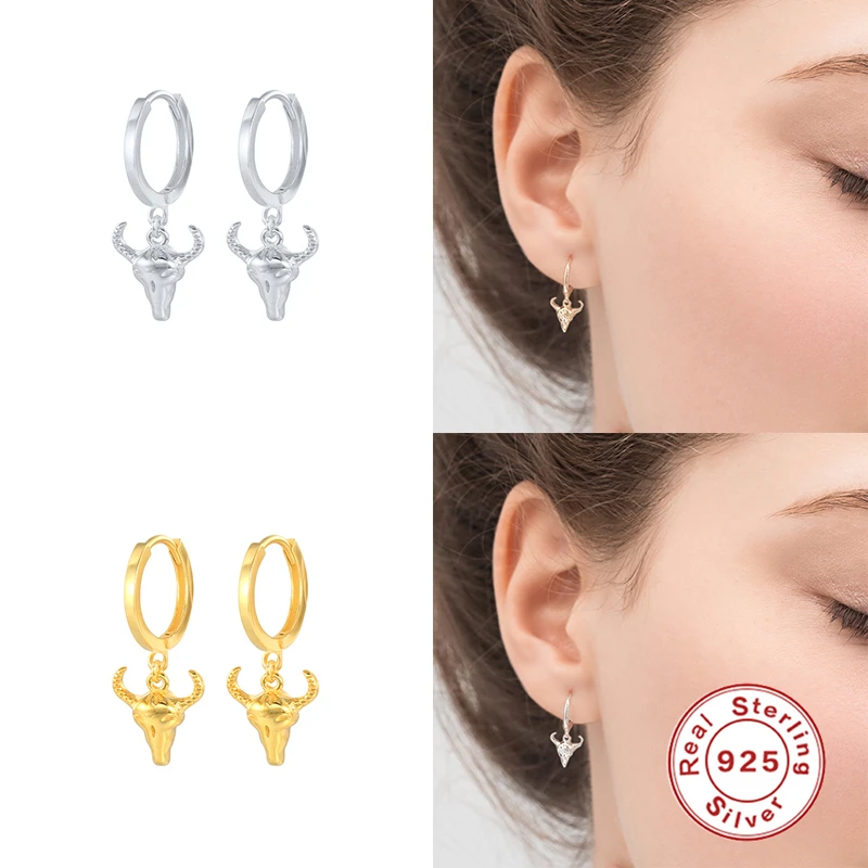 Автоклав 925 стерлингового серебра серьги с подвесками быка рыбка животное дизайн серьги для мужчин и женщин, модное ювелирное изделие для вечерние