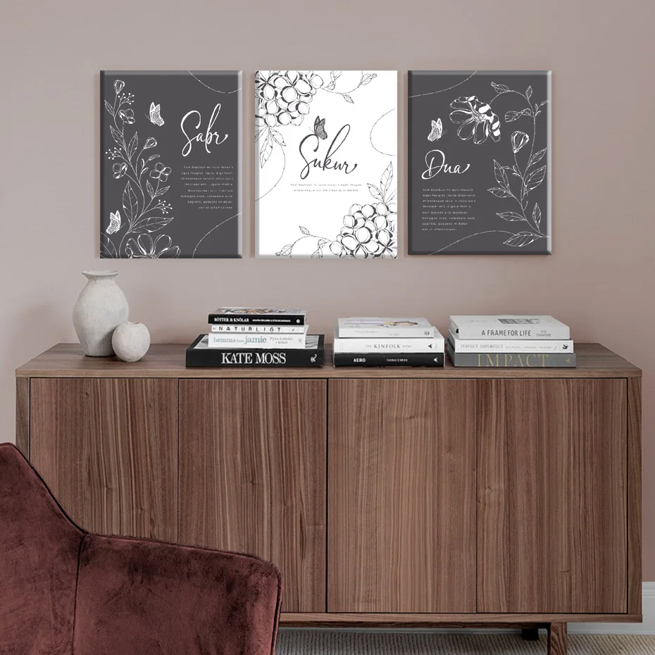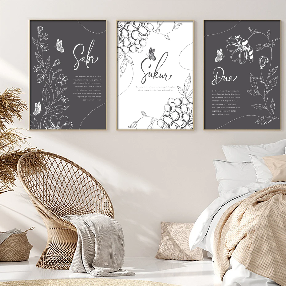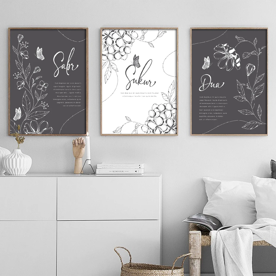 Скандинавский серый и белый цветок, исламский сабр, сукур Дуа, холст, настенный плакат, печать на холсте ислама, картина для гостиной, домашний декор