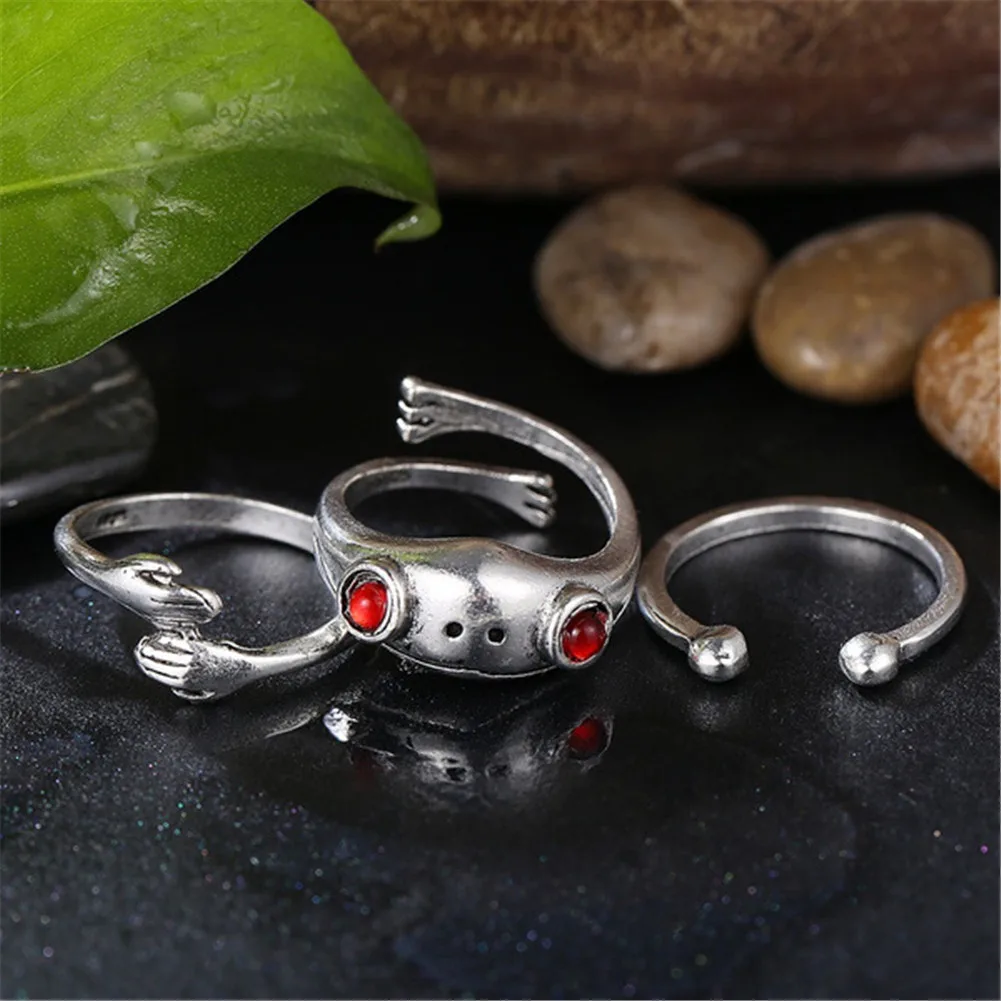 Открытые Кольца в виде лягушки, ретро, с красными глазами, лягушка, Жаба, обнимательные кольца, регулируемые для женщин и девушек, модные кольца на палец с животными, ювелирные изделия