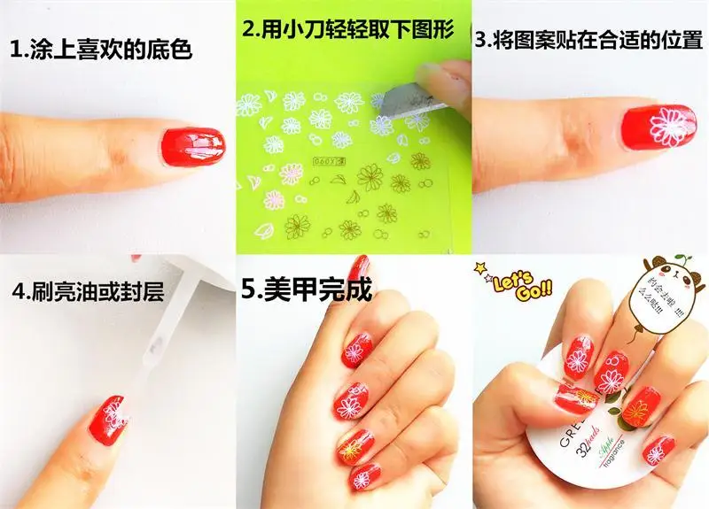 Наклейка может быть нанесена на ногти, ногти на ногах, гелевые ногти, искусственные ногти,
