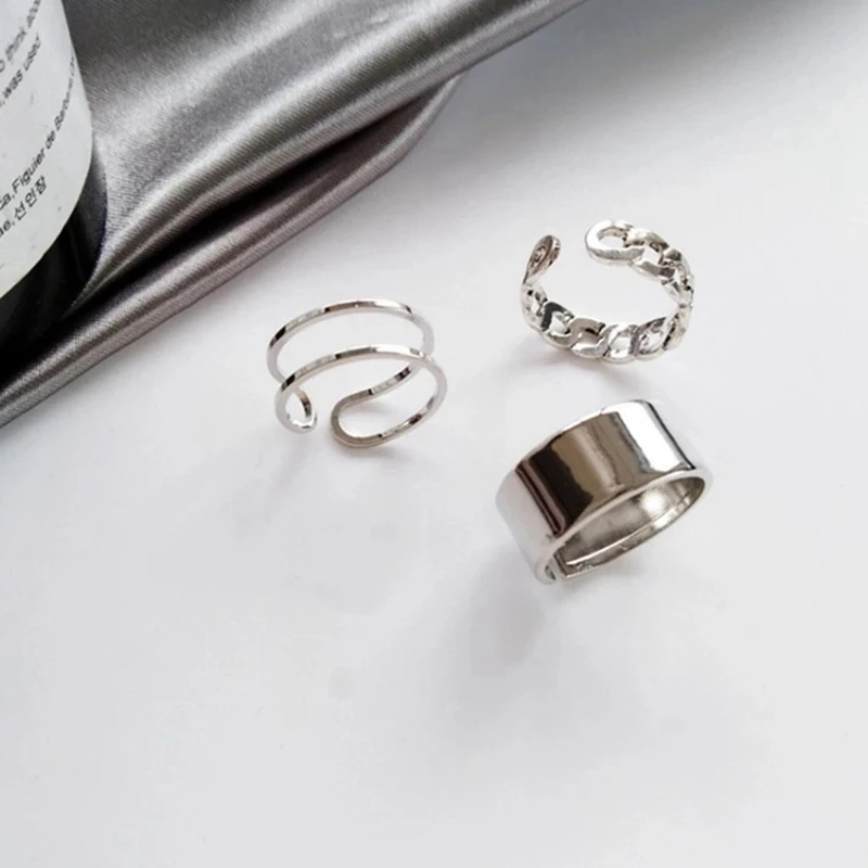 Кольцо регулируемое в стиле Ins с холодным ветром, комплект из 3 пр...