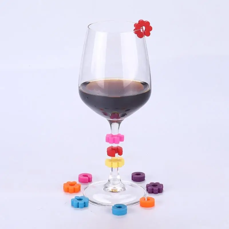 12 шт. подвески для Винных Бокалов, силиконовые однотонные маркеры для напитков в форме цветка, идентификационные этикетки для стаканов, ярлыки, знаки для вечерние