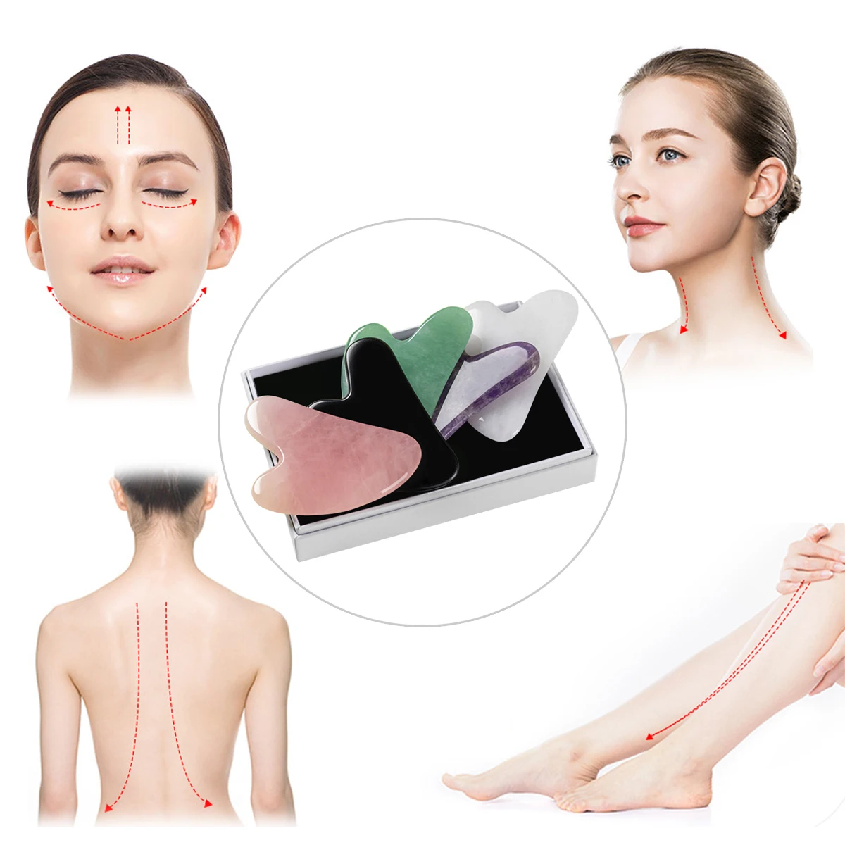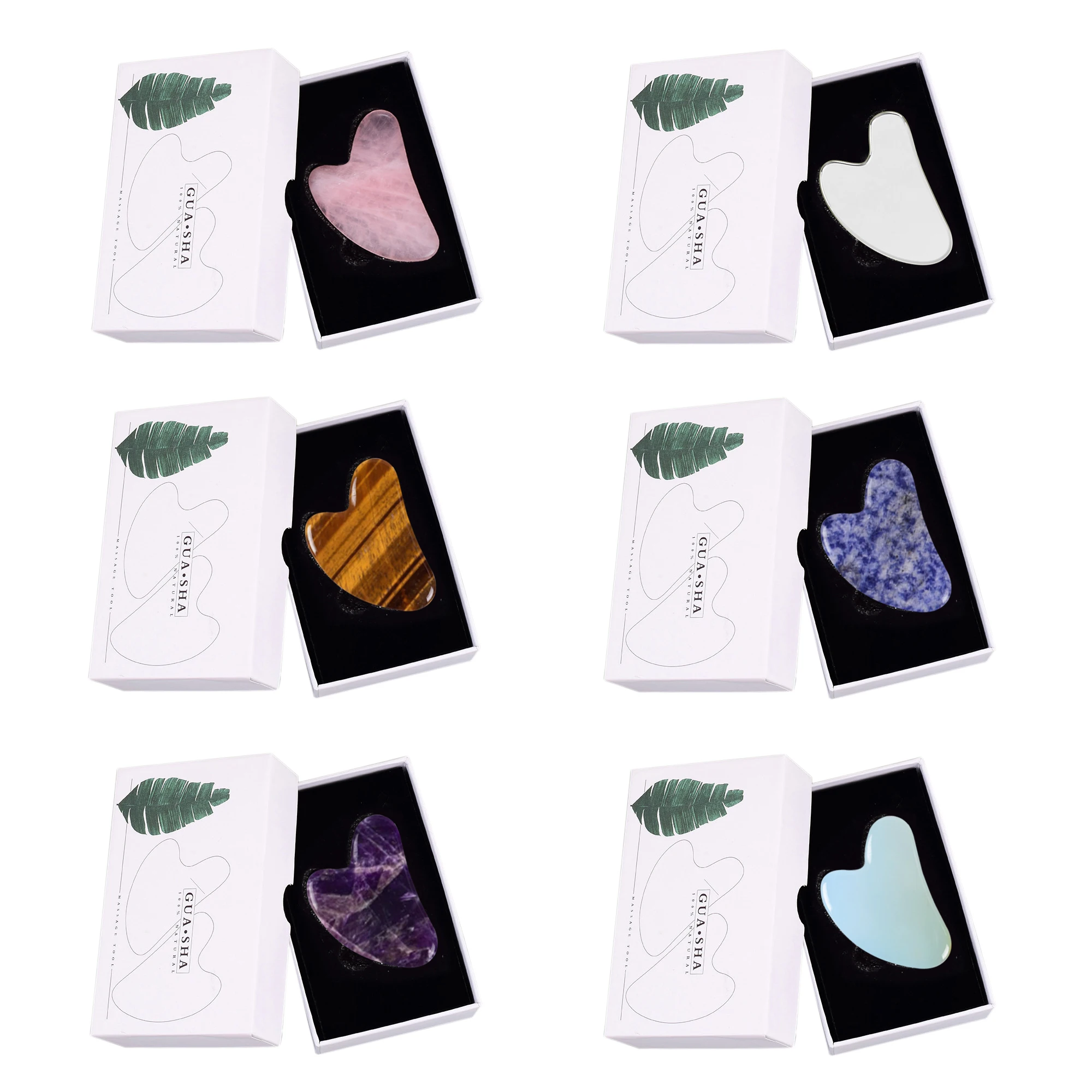 Оптовая продажа, скребки Gua Sha с коробкой, натуральный камень, Нефритовый гуашь, скребок для лица, косметическое тело, спа, инструменты для ухода за кожей лица