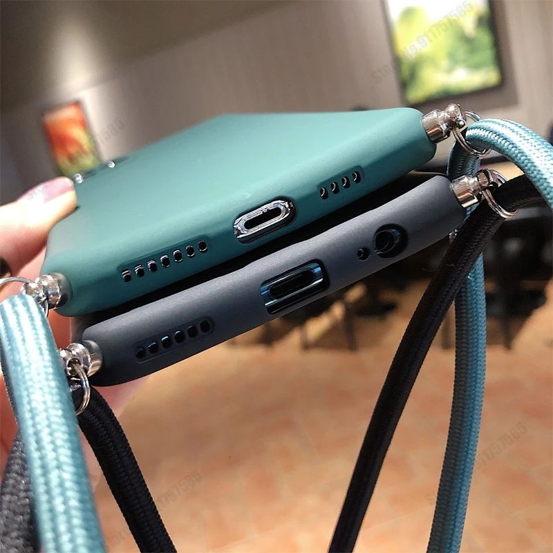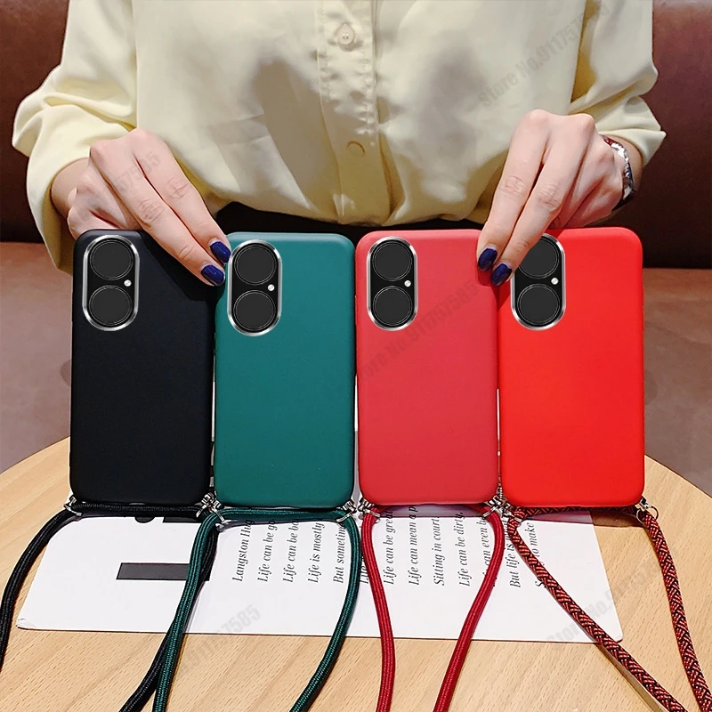 Чехол с подвеской на шею для Huawei P50 Pro P40 P30 Lite P20 P10 силиконовый чехол с ремешком яркий цвет матовый мягкий чехол из ТПУ