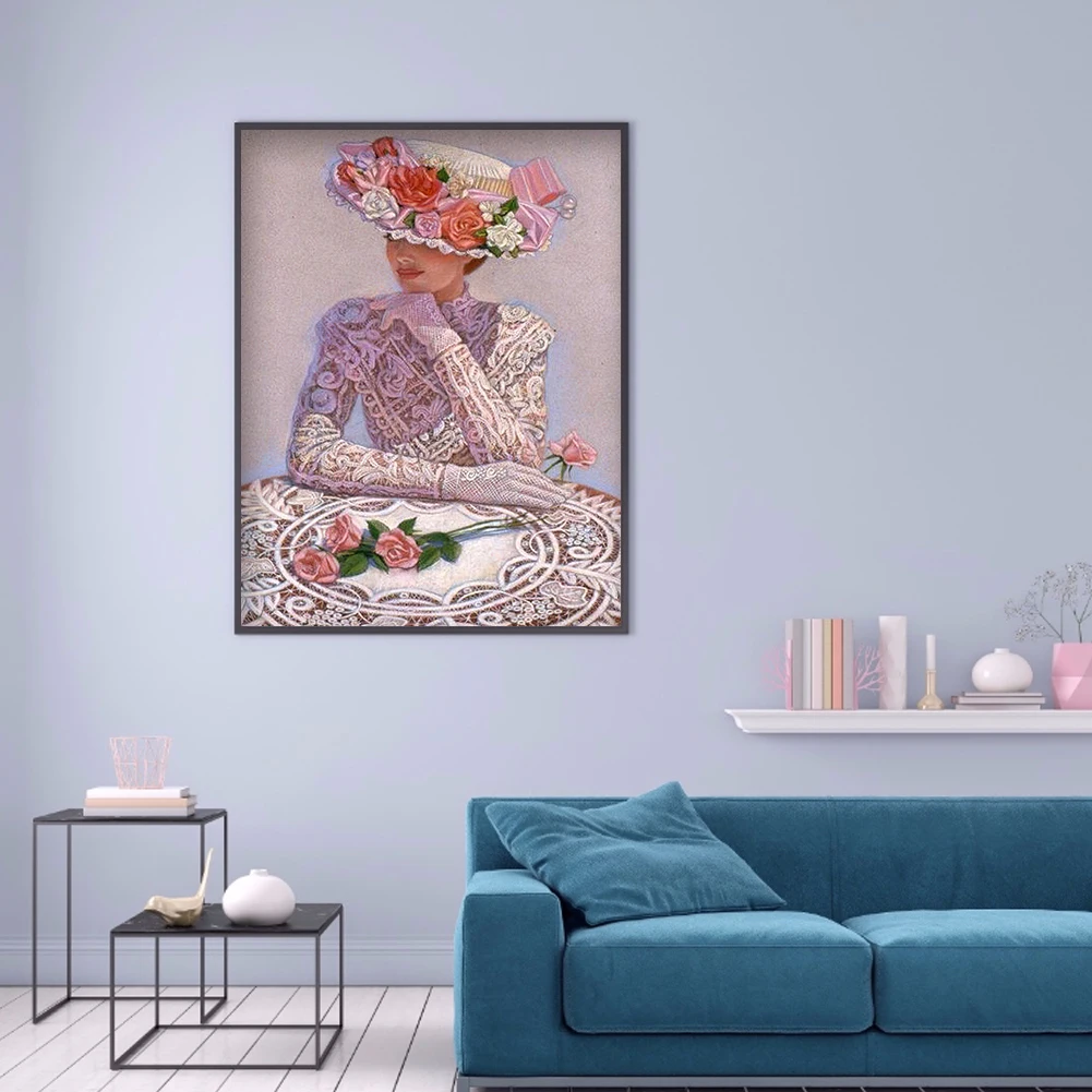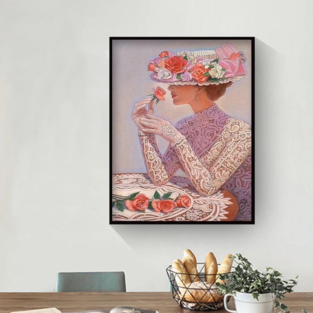 Алмазная живопись сделай сам, картина с красивой девушкой и цветами...