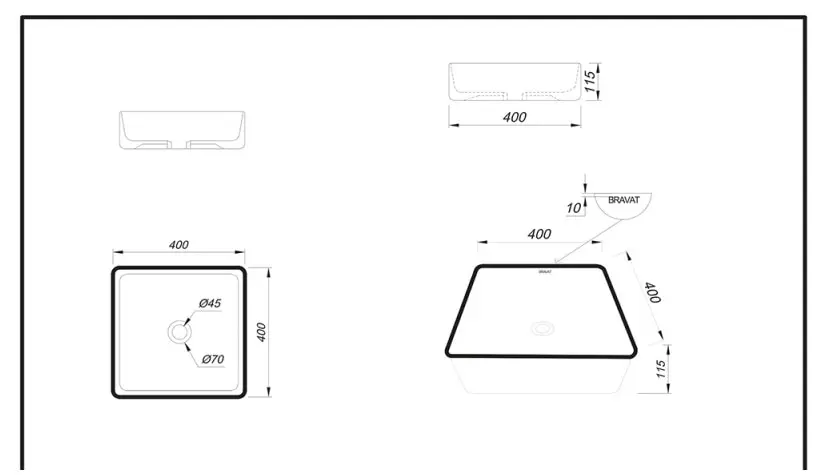 Раковина накладная BRAVAT C22356K-ENG тонкостенная черная